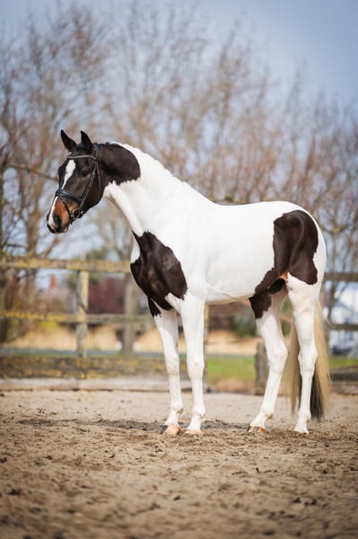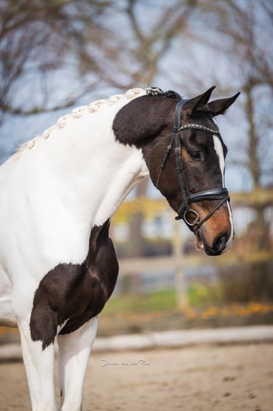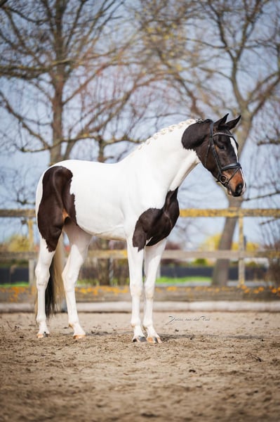Four years old – KWPN Approximately 17.4 hh (hands high) Unique Color: Tobiano Pedigree: Fontaine TN A modern, large-framed type with presence and sporting potential. His appearance: A true eye-catcher – rare color, clean lines, and a contemporary look. His pedigree: Fontaine TN stands for rideability, willingness to perform, and modern dressage quality. More than just pretty. A KWPN with substance, movement, and potential. Perfect for riders seeking something special – without compromising on quality. For those who dare to ride differently. If you're looking for a horse that stands out and also impresses with its ability, this could be exactly your match. Videos, information, and opportunities for a meet-up available at any time.