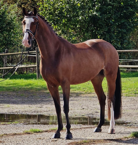 Oto nasz 4-letni brązowy wałach, wyhodowany z linii krwi Hermantico x Cantos x Pacific. To młode koni jest dobrze oswojone i komfortowe w jeździe. Ma doświadczenie w skakaniu małych parkurów i wykazuje dobre potencjał do dalszego treningu i rozwoju w jeździectwie skokowym. Przeszedł badania rentgenowskie. Ten wałach ma super przyjazny charakter, co sprawia, że jest łatwy w obsłudze, zarówno na uwięzi, jak i pod siodłem. Nadaje się dla jeźdźca, który szuka przyjaznego, łatwego do wytrenowania konia z obiecującymi zdolnościami. Niezależnie od tego, czy zaczynasz z młodym koniem, czy szukasz niezawodnego partnera do skoków, ten koń jest doskonałym wyborem. Jeśli chcesz mieć przyjaznego, łatwego do zarządzania konia z dobrymi podstawami w skokach i doskonałym zdrowiem, ten wałach czeka, aby Cię poznać! Możliwość jazdy próbnej po umówieniu się – opłata 30 € zostanie odliczona przy zakupie. W przypadku poważnego zainteresowania prosimy o kontakt pod numerem +31615117573.