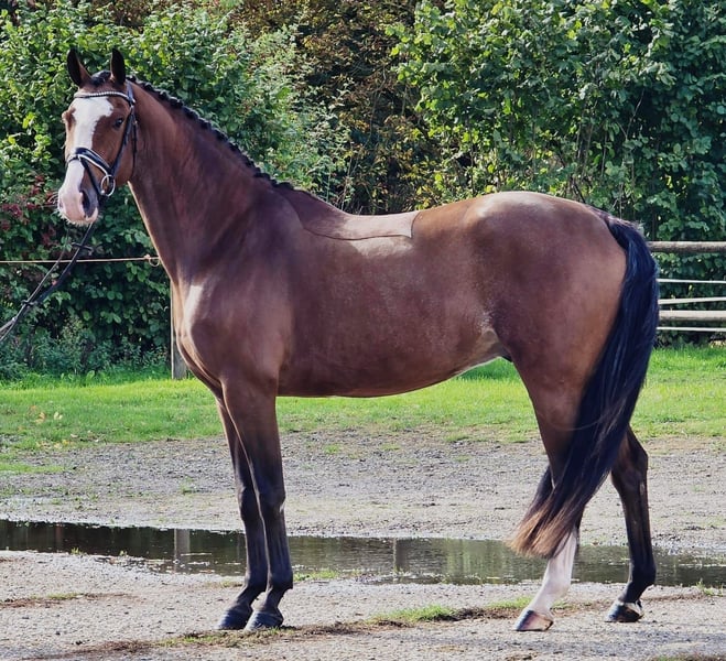 Hier ist unser 4-jähriger brauner Wallach, gezüchtet aus den Blutlinien Hermantico x Cantos x Pacific. Dieses junge Pferd ist gut angeritten und angenehm zu reiten. Er hat Erfahrung im Springen kleiner Parcours und zeigt gutes Potenzial für weitere Ausbildung und Entwicklung im Springsport. Röntgenologisch untersucht. Dieser Wallach hat einen super lieben Charakter, wodurch er sowohl am Boden als auch unter dem Sattel leicht zu handhaben ist. Er eignet sich für einen Reiter, der ein freundliches, gut ausgebildetes Pferd mit vielversprechenden Fähigkeiten sucht. Egal, ob du mit einem jungen Pferd anfängst oder einen zuverlässigen Partner fürs Springen suchst, dieses Pferd ist eine ausgezeichnete Wahl. Wenn du ein freundliches, gut zu handhabendes Pferd mit einer soliden Grundlage im Springen und hervorragender Gesundheit möchtest, dann steht dieser Wallach bereit, dich kennenzulernen! Eine Probefahrt ist nach Vereinbarung möglich – die Gebühr von 30 € wird beim Kauf verrechnet. Bei ernsthaftem Interesse bitte Kontakt aufnehmen unter +31615117573.