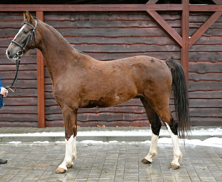 Ungt framtida KWPN kastanjepar med mycket bra rörelse. Ridande valack med stor potential. Videor kan skickas, vänligen kontakta mig för mer information.