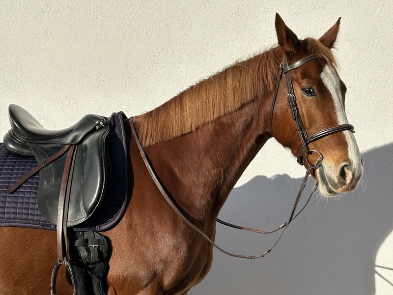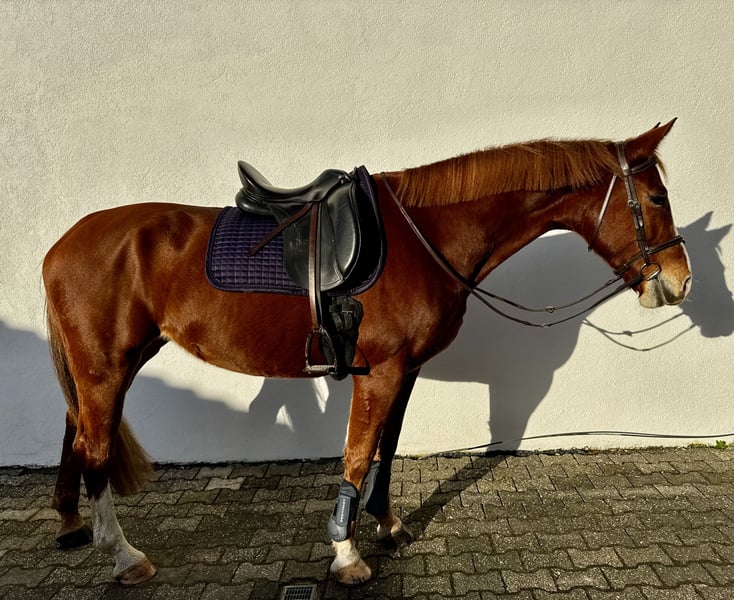 Schweren Herzens suchen wir für unsere 7-jährige Fuchsstute Kata ein neues, liebevolles Zuhause. Kata ist ein Pferd mit viel Potenzial, das in den richtigen Händen eine glänzende Zukunft vor sich hat. Im täglichen Umgang ist sie ein absoluter Schatz. Ob Putzen, Führen oder die allgemeine Stallarbeit – sie zeigt keinerlei Unarten und ist stets angenehm und ruhig. Sie kennt Schmied, andere Tiere, laute Umgebung etc. Sie steht von Sonnenaufgang bis Sonnenuntergang auf einem großen Paddock, Nachts in einer Paddockbox. Sportliche Erfahrung: In den vergangenen Jahren wurde Kata kontinuierlich von Kindern und Jugendlichen geritten und konnte bereits wertvolle Turniererfahrung im Springen sammeln. Sie kennt die Atmosphäre auf dem Platz und hat hier stets einen tollen Job gemacht. Reitunterricht mit und ohne Longe, Bodenarbeit und Ausritte absolviert sie auch sehr erfahren. Aktuelle Situation: Kata wurde zum Teil auch für meine 9-jährige Tochter gekauft. Wir müssen uns jedoch eingestehen, dass wir ihrem Ausbildungsstand und ihrem aktuellen Bedarf (6x die Woche Reiten) nicht mehr gerecht werden können. Kata zeigt sich in den letzten Wochen zunehmend schreckhafter und benötigt einen Reiter, der ihr die nötige Sicherheit gibt, konsequent die Führung übernimmt und sie reiterlich weiter fördert. Diese Aufgabe können wir aus persönlichen Gründen nicht stemmen. Aufgrund ihrer aktuellen Entwicklung ist Kata momentan nicht für Anfänger geeignet. Wir suchen für sie einen erfahrenen Reiter oder eine erfahrene Reiterin, die ihr mit Ruhe und Sachverstand die nötige Sicherheit zurückgibt. Ob für ambitionierte Amateure oder erfahrene Freizeitreiter, Kata hat sicher das Potenzial eine treue Begleiterin zu werden.