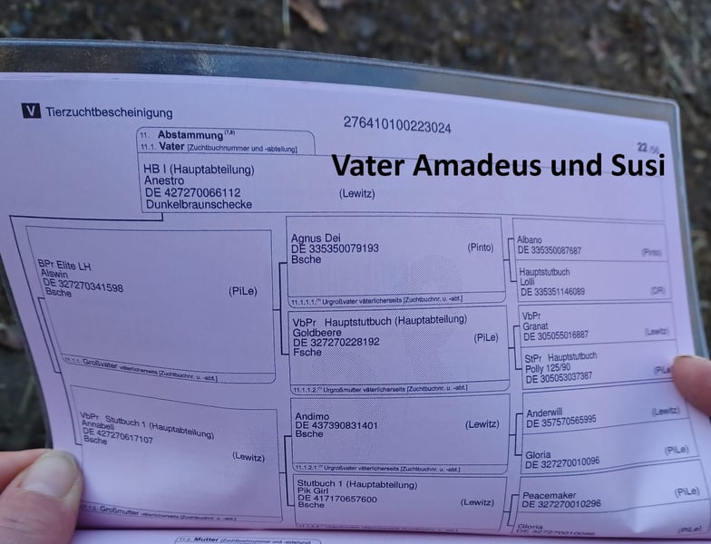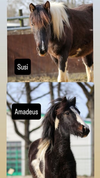 Verkaufe Susi und Amadeus Susi ist eine im Mai 2024 geborene Stute Sie ist prämiert worden hat eine gute Abstammung und im ZFDP eingetragen. Susi kennt das Fohlen-ABC Spaziergänge und Hänger fahren sind für sie kein Problem. Abstammung kann den Bildern entnommen werden. Preis 3350Euro Amadeus ist ein im Mai 2024 geborener Hengst. Er ist reinerbig das heißt alle Fohlen von ihm sind Schecken. Er hat eine gute Abstammung und im ZFDP eingetragen. Amadeus kennt das Fohlen-ABC Spaziergänge und Hänger fahren sind für ihn kein Problem. Abstammung kann den Bildern entnommen werden Kann auf Wunsch gegen Kostenübernahme gelegt werden. Preis: 3050 Euro
