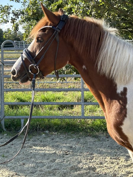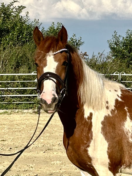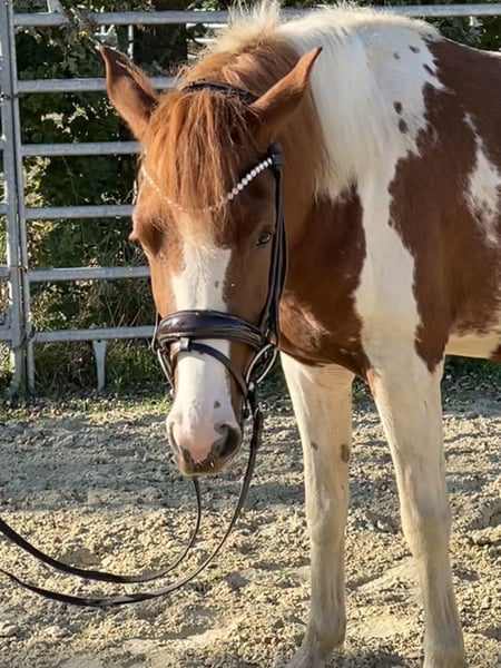 Really lovely pony mare for sale in a sporty context. Stylish, beautifully marked - simply unique! La Kaitana is backed and already behaves well with children - but of course, she needs further training. Due to her size and build, she can also accommodate larger riders. She is extremely fearless, uncomplicated, and a true overachiever: she always tries to please her person. Good basic gaits, has never been sick. Her father is a performance stallion, receiving a 10.0 for character and demeanor at the stallion performance test!!!! (For performance and jumping 9.0) La Kaitana is a great leisure partner, she can certainly excel in competitive events and can also be used as a breeding mare due to her very good lineage. On her mother's side, all mares are elite mares, and since she is only 3 years old, there is certainly nothing standing in the way of her presentation for the state premium eligibility.