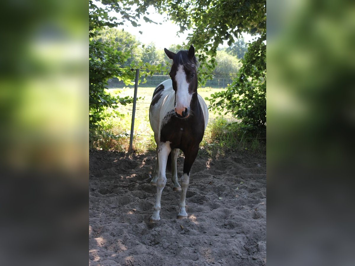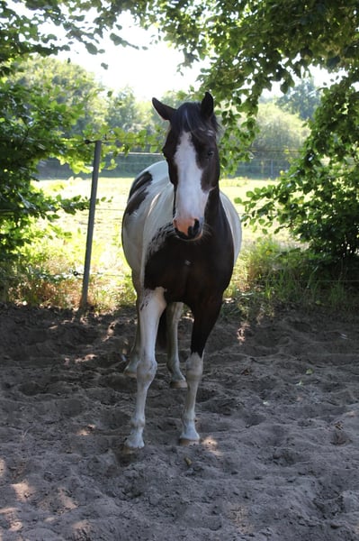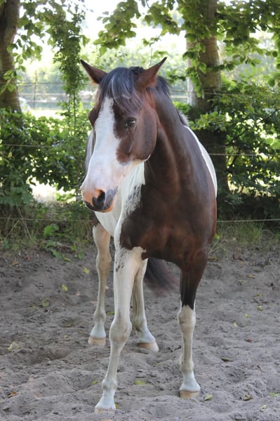 Met pijn in het hart zoek ik wegens familiale veranderingen een nieuw vijfsterren thuis voor mijn pony. Shadow is een veelzijdige zevenjarige Lewitzer ruin met een stokmaat van ongeveer 145 cm, die door zijn bouw zeer goed dekt en er duidelijk groter uitziet. Ik ben zelf 1,64 m groot. Hij is een echte hartendief en zoekt graag nabijheid en contact met mensen. Hij is altijd vriendelijk, nieuwsgierig en aanhankelijk. Ook kan hij, als het om zijn worteltjes gaat, wel eens gretig worden 🥰. Op de paddock komt hij je met een vriendelijke brom tegemoet. Hij staat ontspannen tijdens het poetsen, zadelpassen, etc. Volgens hem wil hij graag urenlang verzorgd en geknuffeld worden. Hij is voor ieder plezier te hebben en kent schriktraining met zeilen, fladderbanden, etc. Ook strand, buitenritten, stoppelen en dressuurwedstrijdterreinen zijn geen onbekende omgevingen voor hem. Hij is geregistreerd als dressuurpony. Bij mij wordt hij veelzijdig getraind: dressuur op de piste/hal, gymnastic, trail, cavaletti werk, maar ook buitenritten maken deel uit van zijn dagelijkse training. Hij kent ook het meelopen naast een kinderwagen. Ik rijd hem vooral recreatief in de dressuur, hier beweegt hij op E/A-niveau. Hij doet ook goed mee over de sprong en vindt dat duidelijk leuk. Met zijn vorige eigenaar heeft hij ook al meegedaan aan buitenritten en wedstrijden in het terrein. Hij is meer een relaxte type dan een renpaard, maar zeker niet dronken. Mijn 6-jarige dochter longeert hem in alle drie de basisgangen. Hij staat bij ons in een grote gemengde kudde van ongeveer 20 paarden. In de zomer altijd op de wei, ’s nachts in de stal in de winter. Zijn sociaal gedrag is vriendelijk en aanhankelijk; stress vermijdt hij. Hij is altijd regelmatig ontwormd, werd bij de tandarts, osteopaat en hoefsmid voorgesteld, waar hij geduldig staat en alle vier de hoeven netjes geeft. Hij is nooit ziek geweest en heeft geen eerdere aandoeningen. Een gezondheidsverklaring (AKU) kan op kosten van de koper worden uitgevoerd. Hij beschikt over een paspoort en is 100% verplaatsingsveilig. Wat ik voor hem wens, is een liefdevol thuis bij mensen met paardenkennis die hem verder willen begeleiden en opleiden, want met zijn zeven jaar is hij nog lang niet aan het einde van zijn opleiding. Shadow wordt inclusief zijn uitrusting verkocht. Bij serieuze interesse kunnen video’s worden gestuurd.