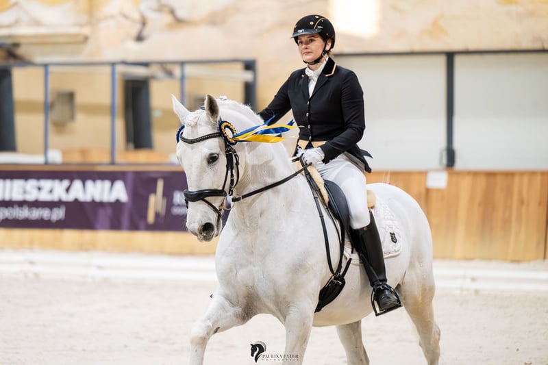 Piękny, urodziwy wałach do ujeżdżenia o niezwykłym ruchu. Wzrost 161 cm w kłębie. Siglavy jest bardzo doświadczonym koniem, robi elementy takie jak: Piaff, Pasaż, piruety w galopie, cięgi, zmiany nóg...elementy CC. Wałach nadaje się do przygody z pierwszymi startami w zawodach z apetytem na więcej. Dodatkowo zna sztuczki takie jak stęp Hiszpański, kładzenie się, siedzenie, leżenie, stawanie dęba... Jest to idealny koń dla doświadczonego jeźdźca jak i ambitnego amatora, który chce czerpać przyjemność z jazdy konnej i czasu spędzonego z nim. Koń jest piękny, przyjacielski, spokojny we wszystkich czynnościach (zadokowanie, kucie, siodłanie, transport, tereny...). Lokalizacja: Polska, województwo podkarpackie Charakter i temperament: - Koń profesor - Dla dziecka - Dla początkującego - Dla doświadczonego - Chodzi w tereny - Przyzwyczajony do psów Inne cechy: - Grzeczny w transporcie - Przyzwyczajony do kowala - Kuty - Prawidłowe kopyta - Umie pracować z ziemi - Pod opieką fizjoterapeuty - Posiada aktualny TUV