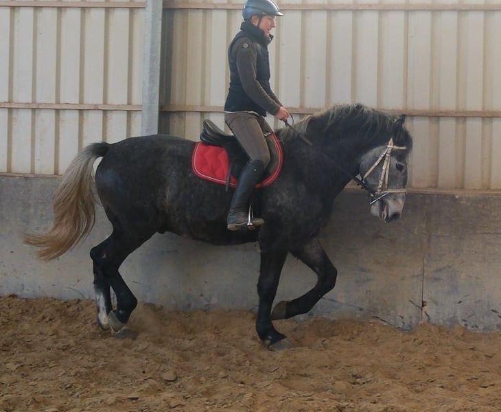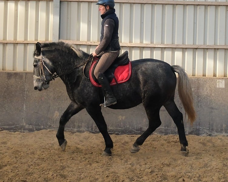Elegante, in Hengsttyp stehende, charmante Rappschimmelhengst. Pajkos ist in allen Gangarten sehr gut geritten, brav und unkompliziert im Umgang. Bei weiterer Förderung auch für den sportlichen Einsatz geeignet. Ein Pferd für den gehobenen Freizeitbereich, nicht für Amateurreiter! 5 Jahre alt, 1,60 m. Bei Interesse bitte anrufen, keine E-Mails! Für eventuelle Fehler in der Beschreibung wird keine Gewähr übernommen! Tel.: 0173-3843407 Da es sich um ein lebendes Tier handelt, sind dies subjektive Eindrücke des Anbieters und keine zugesicherten Eigenschaften des Tieres! Ständig schöne Fahr- und Freizeitpferde sowie günstige Kutschen verschiedener Modelle im Angebot. Standort Stall: 99628 Buttstädt, Oberwendenstraße 39