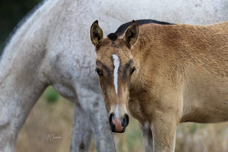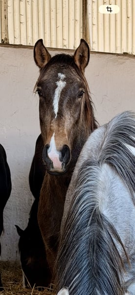 ⭐ Uncas – Exceptional Lusitano Foal in Rare Buckskin with Dorsal Stripe | Elite Lineage & Show Potential ⭐ Born on April 1, 2024 | Buckskin without Grey Gene | Approx. 16.1 hh expected Features: - Breed: Lusitano - Sex: Colt - Year of Birth: 2024 - Color: Buckskin - Height: 16.1 hh (estimated final height) With Uncas, I am offering a top-quality, typy, and genetically valuable Lusitano colt from outstanding lineage. His rare buckskin color with a prominent dorsal stripe and his expressive face with a distinctive marking make him a true eye-catcher. ⸻ 🔥 Exclusive Lineage – Half-brother of the renowned FUEGO FG Uncas is a genetically highly interesting young horse: • Sire: NAVALHEIRO (OPUS-72) – known for rideability, expression, and excellent movement quality • Half-brother to FUEGO FG, an internationally recognized Lusitano from exceptional breeding • No grey gene carrier, ideal for color-stable breeding lines This pairing is rare and especially valuable for breeding and sport. ⸻ ✨ Color, Type & Presence Uncas impresses with: • His rare buckskin color with a distinct dorsal stripe • A unique facial marking – absolute recognition factor • Baroque, compact conformation • Correct foundation and harmonious proportions • People-oriented, clear, and friendly character Estimated final height: approx. 16.1 hh – ideal for Working Equitation, classical dressage, and show. ⸻ 🕊️ Movement & Potential His movements are: • Spacious • Light-footed • Elastic • Powerful and rhythmically correct Thanks to his natural willingness to collect, agility, and excellent balance, he offers outstanding potential for: • Working Equitation • Baroque & Liberty Dressage • Show performances • Classical dressage He has that certain “something” that immediately stands out in the arena. ⸻ 🐎 Health & Upbringing Uncas is raised under the best conditions in Germany and receives everything a healthy young horse needs: • Proper foal management for a young stallion • High-quality forage & mineral feed • Familiar with halter and farrier • Fully vaccinated • Never been ill His handling is exemplary for his age – well-behaved, curious, and calm. ⸻ 💎 Why Uncas? Because he is a special young stallion with rarity value: ✔ Rare buckskin color with dorsal stripe ✔ Excellent lineage (half-brother of FUEGO FG) ✔ Expressive movements ✔ Baroque, compact type ✔ Clear mind & fine temperament ✔ Ideal for show, sport, and breeding ⸻ 📞 Contact & Viewing Uncas can be visited by appointment. I look forward to serious inquiries and am happy to take the time for a personal conversation.
