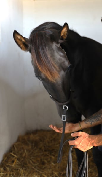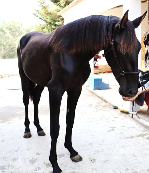 ma bardzo czysty, jest dobrze traktowany, jeszcze surowy. Koń o dobrym charakterze, wciąż w pełnym rozwoju. Bezpośrednio od hodowcy.