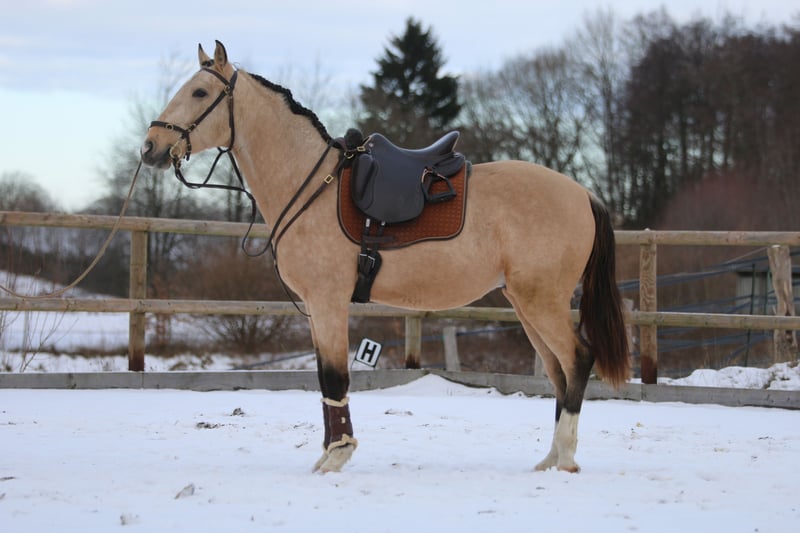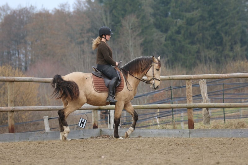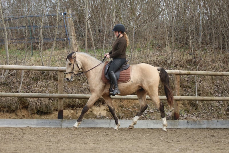 Shai ist ein 4 jähriger Hengst mit einem derzeitigen Stockmaß von 153cm. Er hat ein ziemlich kräftiges Exterieur und es wird da sicherlich noch einiges kommen. Wir haben ihn im Winter langsam angefangen anzureiten und er war zu jederzeit ein sehr ehrliches Pferd. Jetzt hat er sogar schon an zwei Seminaren teilgenommen und dieses auch trotz vieler fremd Pferde sehr gut und souverän gemeistert. Ich denke mir, dass er ein tolles Working Equitation Pferd werden wird, da er absolut unerschrocken ist, schnell und wendig ist und Spaß an Aufgaben hat. Für weitere Fragen kontaktiert mich gerne. Videos folgen in Kürze