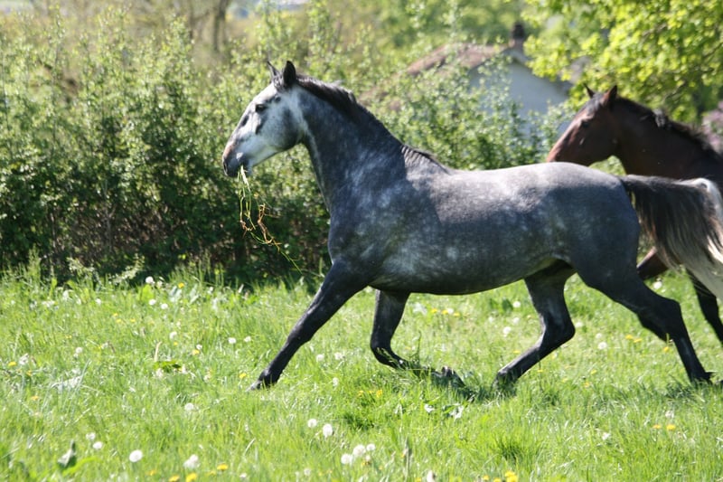 Dieser tolle Hengst lebt im Moment noch auf der Weide mit einem älteren Wallach zusammen, bis Anfang Frühling konnten wir ihn sogar noch in der Männerherde lassen. Nun sind seine Hormone erwacht und deshalb mussten wir ihn aus der Herde nehmen. Er ist longiert, läuft ohne Probleme am Halfter an anderen Pferden (Hengst, Wallache, Stuten) vorbei. In Freiheit zeigt er fantastische Gänge mit viel Schub von hinten und sehr elastisch. Er ist vom Modell und Charakter her ein Deckhengstanwärter. Weder seine Eltern noch Grosseltern (fast alle Schimmel), haben Melanome. Er ist ganz sicher ein Farbträger, seine Mutter ist dunkelbraun, beide Eltern sind Schwarzträger. Gerne geben wir Ihnen per Telefon weitere Auskünfte.