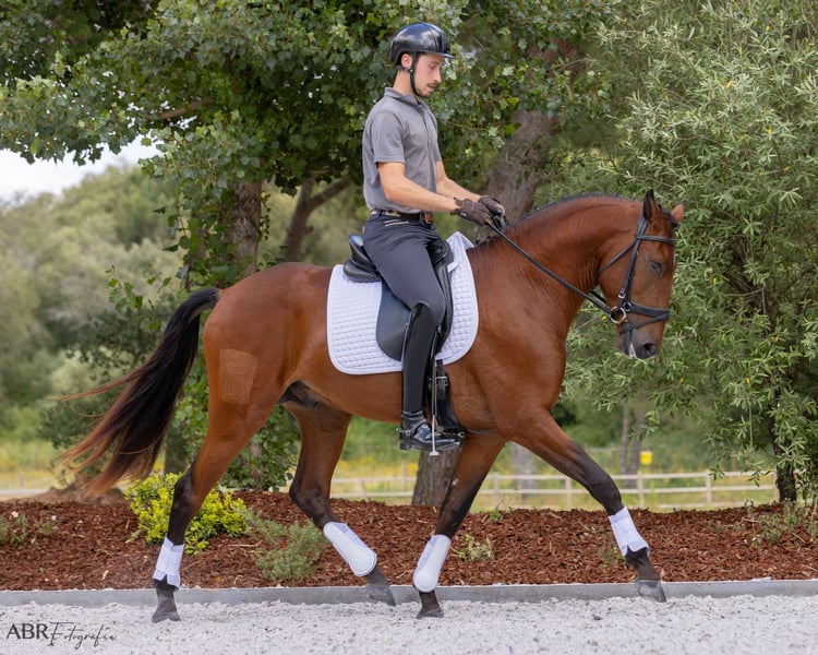 Ravel è un giovane stallone tipico e barocco, che ha potuto godere della sua infanzia in libertà all'interno di un gruppo sociale e che ora, a 4 anni, è stato montato con delicatezza. Dimostra di avere molto talento e un forte legame con le persone. Con tre ottimi passi di base e un meraviglioso galoppo, oltre a una buona bilanciatura, ha fatto rapidi progressi e ora padroneggia già i movimenti laterali e il galoppo esterno. È un partner affidabile e un cavallo molto amichevole, pronto a "fare il passo in più" per il suo umano, sia nel rettangolo di dressage che durante una passeggiata. Ravel cerca il suo umano per il resto della vita, per vivere insieme in una relazione di collaborazione. Ti senti chiamato? È nato nel nostro allevamento in Portogallo e vive qui con noi. Puoi trovarci su Instagram come Coudelaria Linda Oliveira o avere maggiori dettagli sul nostro sito web www.coudelaria-linda-oliveira.com Sarò felice di inviare ulteriori informazioni, video e radiografie tramite WhatsApp o email.