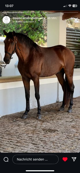 Ravel est un jeune étalon typé et baroque, qui a pu profiter de son enfance en liberté dans un groupe social et qui a maintenant été monté doucement à 4 ans. Il se montre très talentueux et attaché aux humains. Avec trois très bonnes allures de base et une merveilleuse galopade ainsi qu'un bon équilibre, il a fait des progrès rapides et maîtrise désormais les mouvements latéraux ainsi que le galop extérieur. C'est un partenaire fiable et un cheval très amical, qui est prêt à "faire un effort supplémentaire" pour son humain - que ce soit dans le carré de dressage ou lors d'une sortie. Ravel cherche son humain pour le reste de sa vie, afin de vivre ensemble en partenariat. Cela vous parle-t-il ? Il est né dans notre élevage au Portugal et vit ici avec nous. Vous pouvez nous trouver sous Coudelaria Linda Oliveira sur Instagram ou pour plus de détails sur notre site web www.coudelaria-linda-oliveira.com Je serais également ravi d'envoyer d'autres informations, vidéos et radiographies par WhatsApp ou par e-mail.