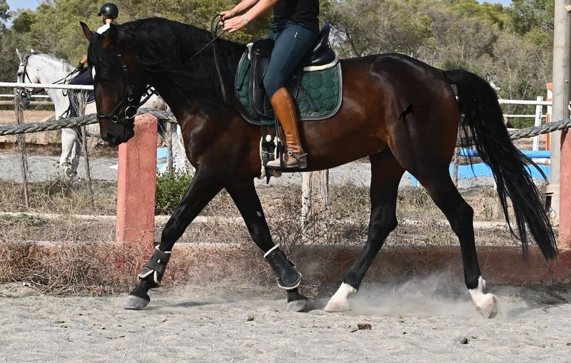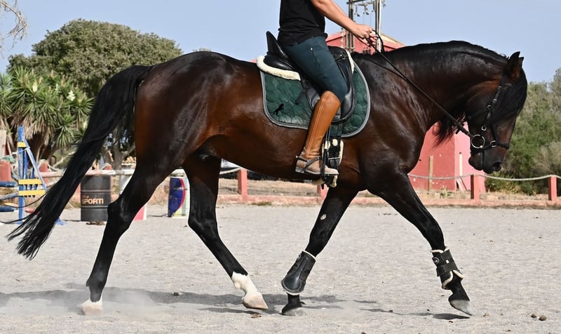 Ce hongre Pura Sangre Lusitano, né en 2021 et avec Livro Azul (document original des Lusitaniens pur sang du Portugal), est un véritable trésor au grand cœur. Il suffit de regarder dans ses yeux doux pour ressentir immédiatement à quel point il est affectueux et chaleureux. Malgré son jeune âge, il est incroyablement posé et calme. À chaque instant, il souhaite plaire et bien faire ! De plus, il est vraiment intrépide et un véritable gentleman, que ce soit en présence de juments ou d'autres étalons. Le jeune cheval est monté avec un mors à double brisure et se déplace sans problème pieds nus. Il apprend déjà à s'étirer correctement et accepte bien le contact avec la main, ce qui le rend facile à monter. Son mouvement est également définitivement intéressant pour les cavaliers de dressage ! Son élevage a été idéal, car sur de nombreuses hectares, il a pu simplement être un cheval dans un groupe d'étalons, avec plus de 30 jeunes étalons ! Cela se ressent immédiatement, car il est mentalement très clair, intrépide, ouvert et doux. Il y a une option de castration sur place, bien qu'il n'ait définitivement pas de manières d'étalon. Actuellement, il mesure 165 cm et continuera certainement à grandir en hauteur et en taille ;) Avec son tempérament irréprochable, il deviendra avec un peu plus d'entraînement un cheval idéal pour toute la famille. Un test de piroplasmose négatif (sans piro) est également disponible. Le prix pour sa qualité est absolument juste ! Actuellement, il se trouve à Majorque ! Des vidéos et son pedigree sont disponibles sur demande. Je peux organiser sur place une visite vétérinaire, une castration, un débourrage, un transport ou même votre voyage si vous souhaitez venir le voir en personne. Pour plus de détails, n'hésitez pas à consulter ma page ou à en discuter. Salutations d'Espagne !