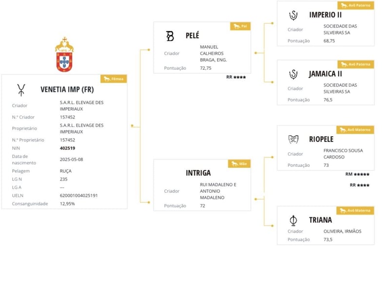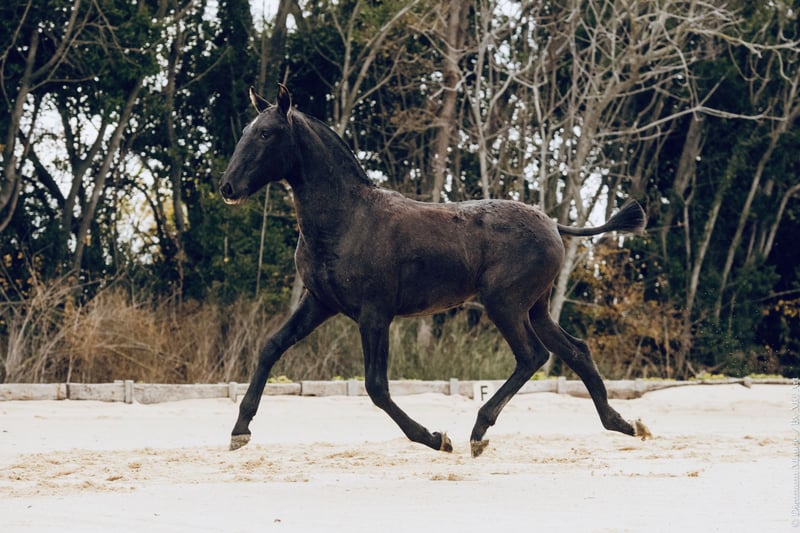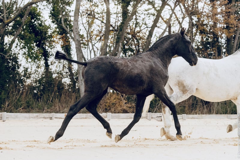 Vénétia IMP Poule MBR x Intriga (Riopele SC) Stunning purebred Lusitanian foal, exuding elegance and presence. Harmonious conformation, expressive head, and excellent movement. A foal that is friendly and well-handled, curious, making her ideal for sport, working riding, breeding, or leisure. COAT: GREY MARKER G/g – Heterozygous grey allele carrier AGOUTI MARKER a/a – Homozygous black allele carrier Available upon request. For more information, photos, or videos, please do not hesitate to contact me. PARENT PHOTOS AND STUD BOOK REGISTRATION see: ad