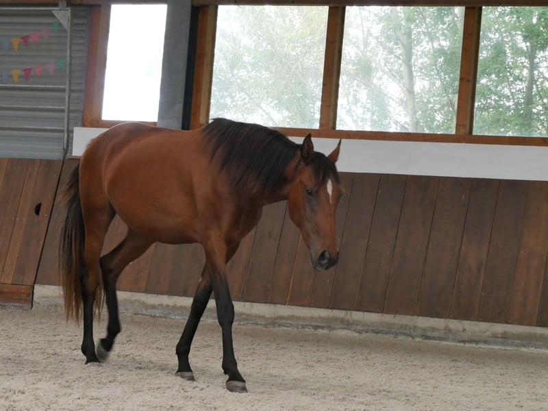 Onze 2-jarige Titânica is een prachtige Lusitano merrie met een fijne vacht op haar voorhoofd. Haar kleur is volledig bruin, ze beweegt zich harmonieus en leeftijdsgebonden. Titânica leeft in een kleine merrie groep en gedraagt zich voorbeeldig. Ze geniet ook van het samenzijn met ons mensen en houdt ervan om gekriebeld te worden. Ze geeft zonder problemen alle 4 hoeven. We wensen voor Titânica een thuis waar ze geliefd, gerespecteerd en op een ras-typische manier gestimuleerd wordt, waar ze paard mag zijn en zeker de tijd krijgt om op te groeien. Wat betreft haar exterieur is ze typvol en sportief. Verwachte eindhoogte: 1,60 APSL papieren (blauwe boek) Afstamming zie foto Wilt u Titânica leren kennen: we horen graag van u.