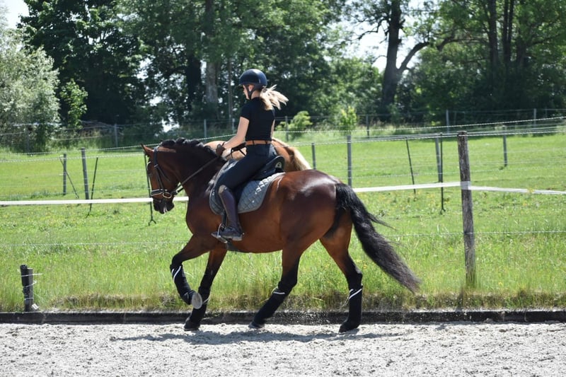 Rosa da Hermida est une jument lusitanienne sortie tout droit d'un conte de fées. Magnifique, pétillante - ronde comme un ballon, elle offre déjà à son cavalier, à seulement 4 ans, une sensation d'équitation fantastique. Grâce à son célèbre grand-père « Rubi », elle est certainement dotée de trois excellentes allures de base, faisant battre le cœur de chaque cavalier. Elle est très agréable à monter et légère dans la main. Elle a été délicatement débourrée et est actuellement en cours de formation polyvalente avec beaucoup de sensibilité. Sur le plan du caractère, cette jument est inégalable et est un véritable trésor à manipuler. Il n'y a aucune difficulté dans le quotidien - promenade au pré avec différents compagnons, douche, maréchal-ferrant, transport en van, attache, sorties en extérieur - pour Rosa, tout cela est une évidence. Un cheval de rêve qui est proposé à la vente uniquement en raison de sa petite taille. - Sans Piro.