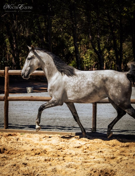 Puma VA verfügt über einen wunderbaren, freundlichen und abenteuerlustigen Charakter. Sie ist stets die Erste, die auf Entdeckungstour geht, und hat vor nichts Angst. Ihr ausgezeichnetes Pedigree ist im APSL Blue Book verzeichnet. Ihr Vater, Impar II, hat sich auf Grand-Prix-Niveau in Frankreich bewährt. Sie verfügt über drei ausdrucksstarke Gänge, bei denen es scheint, als würde sie kaum den Boden berühren. Ihre neugierige und kooperative Persönlichkeit macht sie zu einer großartigen Reitpartnerin für Dressur, Working Equitation oder Ausritte. Derzeit befindet sie sich im Grundausbildungsstand nach dem Trainingsprogramm von Vale de Agua (https://www.quintavaledeagua.com/index.php/va-lusitanos/breeding-development). Sie ist gut ausgebildet unter dem Sattel, mit weichen und feinen Reaktionen auf die Hilfen der Beine und des Gewichtes im Sattel. Über VA Lusitanos: Wir züchten unsere Pferde mit Sorgfalt. Die Fohlen werden auf der Weide geboren, wachsen in der Herde auf, in hügeligem Gelände mit Bäumen, Büschen, offenen Flächen, Flüssen und einem kleinen See, sodass sie an unterschiedlichste Umgebungen gewöhnt und selbstbewusst werden. Sie erhalten stets hochwertiges Heu sowie ihre Portion Körner und Mineralien. Sie lernen viel gutes Sozialverhalten voneinander, von ihren Müttern und Tanten in der Herde, neben sozialer Interaktion mit anderen Pferden ist auch der tägliche Kontakt mit Menschen ein wichtiger Teil ihrer Erziehung. Durch den häufigen Kontakt zu unseren Pferden entwickeln sie ein tiefes Vertrauen in den Menschen, was alle Interaktionen erleichtert. Unsere Kunden bestätigen immer wieder, dass unsere Lusitanos in Bezug auf Selbstvertrauen, Gelassenheit und leichte Handhabung in allen Situationen herausragen. Da wir glauben, dass Lusitano-Pferde Zeit brauchen, um ihre Knochen und Muskulatur vollständig zu entwickeln, bewerten wir jeden VA Lusitano frühestens im Alter von 4 Jahren. Puma VA begann ihre Ausbildung mit 5 Jahren, zunächst an der Longe und in der Hand, seit einem Jahr auch unter dem Sattel. Sie ist noch nicht als Zuchtstute eingetragen, doch wir sind überzeugt, dass sie eine sehr gute Zuchtstute und Mutter sein könnte. Wir haben verschiedene VA Lusitanos in unterschiedlichen Altersgruppen im Angebot: junge, in Hand trainierte Pferde sowie Pferde unter dem Sattel. Eine vollständige Übersicht unserer Lusitanos finden Sie auf unserer Website. Außerdem bieten wir unseren Kunden hochwertige Gästehäuser an. Beim Kauf eines Pferdes bei uns ist Ihr Aufenthalt in einem unserer luxuriösen Gästehäuser bis zu fünf Nächte kostenlos (https://www.quintavaledeagua.com).