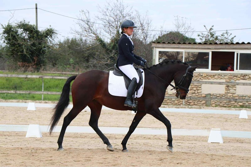 We present to you an elegant 6-year-old Lusitano mare, bay brown, standing at 1.58 m, already ready to enjoy herself in the dressage arenas. Sire: Rubi AR – An internationally renowned stallion, recognized for his power, flexibility, and exceptional genetics, which he passes on to his offspring. Dam's sire: Sueste SS – A breeding stallion that brings elegance, balance, and quality to the gaits while maintaining a straightforward and cooperative character. With her harmonious build and a lot of style, this mare displays three beautiful gaits, consistency, and balanced movement. Rather easygoing and very endearing in daily life, she adapts well to both pasture and box/paddock life. Currently being worked by a professional rider and also ridden by an Amateur 3 level rider. Already a winner in Amateur 3 (over 70%), she knows the movements of Amateur 2 and shows reliability and willingness. Due to her young age, ease of use, and seriousness at work, she represents an excellent opportunity for a skilled and guided rider wishing to progress calmly in dressage with a quality mare.