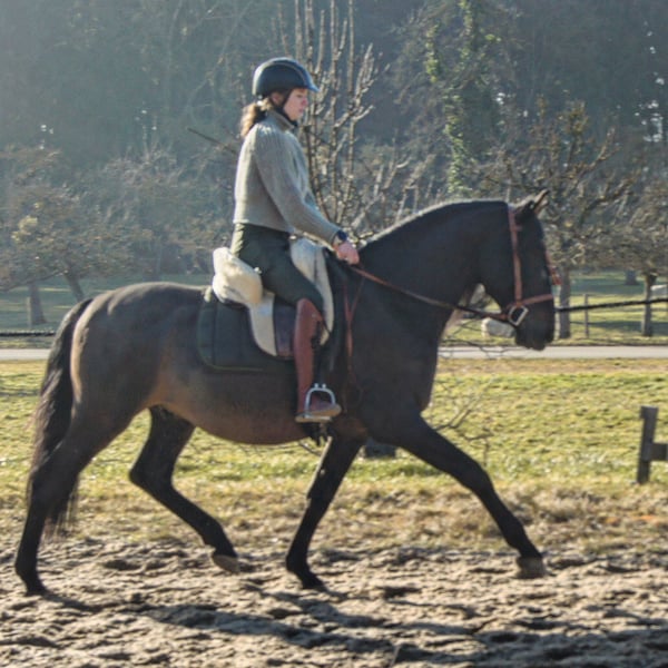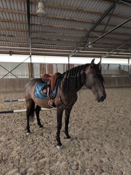 Talented Spanish Gelding (Location: Bodenseekreis, 886...) My best friend Miro (born 2015, approx. 15.1 hh) is a Lusitano x PRE gelding with a lot of willingness to perform and learn. With a heavy heart, he is looking for a loving, permanent home with horse enthusiasts who will appreciate his sensitive yet motivated nature. Miro is a diligent, well-mannered, and very friendly gelding who is always well-behaved during farrier visits and vet appointments. He needs his stable handlers and is therefore not suitable for riding school operations. Once Miro knows and trusts his people, he will go through fire for them. His sensitive nature makes him especially suitable for calm, experienced riders, as Spaniards are generally very lively horses. Not suitable for beginners. Very good with children. Together with me, he has completed multi-day trail rides, long solo rides, hikes, moves, riding lessons, and much more, always motivated and eager. I am not aware of any bad habits. Regular trimming, deworming, and vaccinations are of course maintained. He is absolutely safe in the terrain, familiar with road traffic, villages, wildlife, and is unshakable in any situation. Not a weight-carrying horse! I work extensively with my horses from the ground, so Miro is also familiar with lunging with side reins, double-lunging, ground work, as well as free jumping and liberty work. He already performs some circus tricks very reliably. Since I am not a particularly skilled rider, I would currently rate his level at a solid E, trending towards A and above. He definitely has potential for more! What is important to me for his new home: He has thrived best in a herd of geldings. Mixed groups of larger size have previously caused him uncertainty and proved unsuitable. He is accustomed to box stall and pasture life. I have not yet tried smaller mixed groups (under four horses). Group sizes should not exceed four horses. It is important for me to adhere to this for his well-being. I am looking for someone who will continue to support and challenge him in a varied way (especially from the ground) and has the necessary sensitivity for such a wonderful horse. Once you win his heart, it is yours forever. Feel free to contact me with any questions. Videos and pictures available upon request. Viewing is always possible, and trial riding can be arranged for a fee to avoid riding tourism (charged accordingly). Rehoming only if there is 100% mutual good feeling, as I will not simply let go of my best friend. In short: Who is Miro ideal for? For horse lovers seeking a loyal, versatile partner who enjoys working, wants to be challenged, and needs fair, loving handling. Miro is also suitable for children in terms of handling — but not as a beginner’s riding horse. Important to know: He needs a calm, experienced, and empathetic person. Pressure or haste will achieve nothing with him — trust is everything. What makes Miro special: Miro is an absolute sweetheart — sensitive, eager to work, and loyal down to his last hair. Currently, he is not overly fit, which has resulted in a slight belly, but this will disappear with regular training (he is a very easy keeper). (10-12 carrots 🥕🥕🥕 depending on the provision of accessories) Only to the best home – quality over quantity!