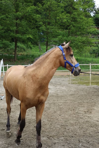 A 5-year-old buckskin Lusitano gelding is available for sale. Not suitable for beginners, but ideal for experienced riders, especially those familiar with groundwork and communication. The horse is worked by experienced handlers but still does not fully respond to commands, particularly from the saddle, and occasionally shows his young age. However, he has a very good temperament, is easy to handle, does not bite or kick, and is well-disposed and curious around other horses. The horse is missing two upper teeth (the previous owner did not mention this, and the exact cause is unknown), but this has never affected his feeding or bit acceptance. Potential buyers will be evaluated based on the type of life they can offer the horse and the region. Located in the Varese province, preferably to remain within Lombardy or the Ticino canton. NO traders.