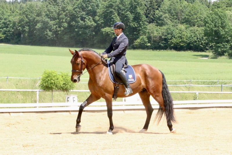 For those who are looking for a large-framed Sportlusitano, watch out! Notável do Vizo is a licensed PSL gelding, 6 years old, 1.68m tall and is equipped with a great mechanics. He has been riding professionally with Mihai Maldea for 11 months. He was successful at the very first tournament of his life and secured 1st place in both dressage and trail. The imposing Lusitano is doubly gifted and is also extremely talented on the jump. If you are looking for an athlete to rock the tournament scene this season: this is the opportunity! Notável has been in Germany since February 2022 and has an X-ray TÜV including a back. From Notável there is frozen seeds, which can be purchased with the purchase. Upper price segment. Please send inquiries exclusively via Whatsapp at 00491622822045.