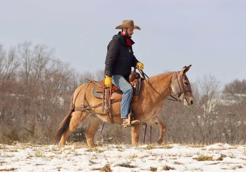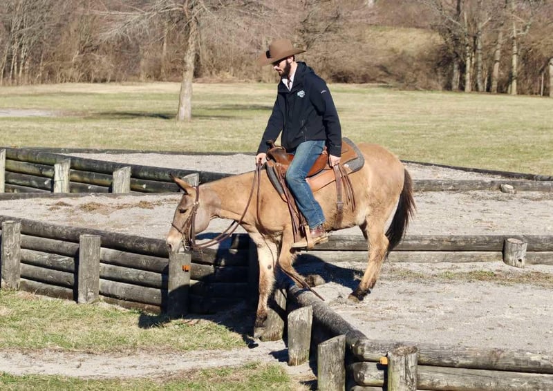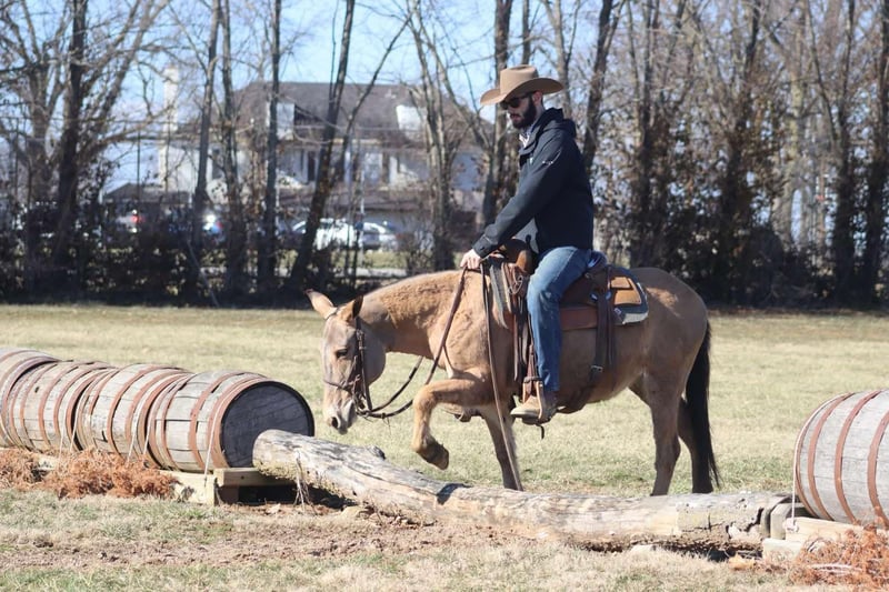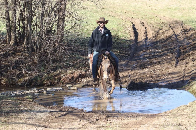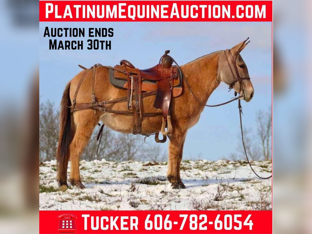 ONLINE AUCTION Place your bids at www.PlatinumEquineAuction.com Starting Bid $3500 Auction ends March 30th, 2025 Need a new saddle? Check out White Rock Saddles on our website or Facebook! Nina is a 9 year old, 13.2 hand Molly mule. Don’t let her height fool you, Nina is just about as wide as she is tall! The rider in the pictures is 6’4”. Even though she is stocky, Nina is still quite athletic. She is an excellent trail riding mule. She has had lots of miles on the trails in various terrains. She walks, jogs, and lopes. Has a decent handle on her and rides one handed. Nina jumps up and down banks, she steps over logs, and crosses water without hesitation. Nina gets along with other mules in the pasture. She hauls well. She’s been tied out on the high line on overnight camping trips with no issues. The previous owners worked her single and double, but we have not personally hooked her. Nina is a good looking mule that is ready to go on the big rides! Lots of heart to go all day. For more information, please call/text Brookside Horse Sales Tucker 606-782-6054 Located in Brooksville, KY. ONLINE AUCTION Place your bids at www.PlatinumEquineAuction.com Starting Bid $3500 Auction ends March 30th, 2025 Need a new saddle? Check out White Rock Saddles on our website or Facebook!