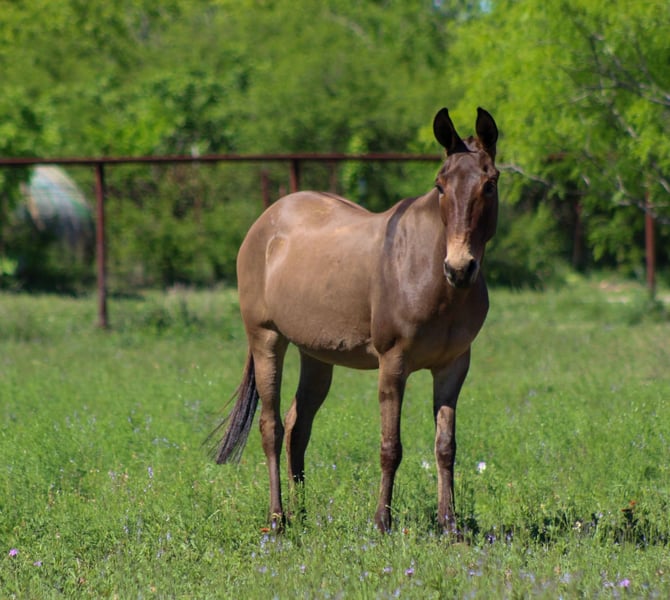 ONLINE AUCTION Place your bids at www.PlatinumEquineAuction.com Starting Bid $3500 Auction ends May 11th, 2025 Need a new saddle? Check out White Rock Saddles on our website or Facebook! Meet Chica! I guarantee you won’t find a broker and cooler little mule than this gal! They say good things come in small packages, and that couldn’t be truer! At just 8 years old and standing 13 hands tall, don’t let her size fool you—she’s got a heart of gold and can do everything a big mule can. Chica is safe for absolutely everyone, from kids to even grandma and grandpa, so you can ride her with peace of mind! She’s one of the nicest mules I’ve ever seen, and with her great attitude, you don’t need to be a mule person to enjoy her. She would be perfect for a first-time mule owner as well. This little lady is extremely well broke and has a fancy handle on her. She’s one-handed broke with a fantastic neck rein, and she’ll walk, trot, and lope perfect circles, always picking up the correct leads and stopping on a dime. Chica would make an exceptional little mule to take to the show pen—she’s just that broke and that cool! Need to open or close gates? No problem—she’ll side pass right over to them. You can even ride her with just a piece of leather around her neck! Chica is used to it all: carrying flags, crossing tarps, and she’s even comfortable shooting guns off her back. We have heeled steers on her in the roping pen, and she stands in the box without a hitch. When it comes to trail riding, Chica is a blast! She’s been ridden on miles and miles of trails and will gladly go wherever you point her. She crosses water, logs, and hills with ease and has been ridden down busy streets and highways. I haven’t met a better mule than sweet Chica! She’s great with kids and will happily pack them wherever they want to go. Chica fits absolutely any level of rider, and everyone who hops on her has a blast. I just know her new owners are going to love her as much as we do! Chica is great with clippers, loads and unloads easily off the trailer, and is a breeze to saddle and bridle. She stands wonderfully for the farrier, is great for baths, and even stands in cross ties. Plus, she’s an easy keeper and currently barefoot. Don’t miss out on this once-in-a-lifetime mule—Chica is truly one of a kind! If Chica sounds like she is a fit for you please give us a call with any questions you may have we would love to chat with anyone interested in her. Schedule a time to come meet her but if you can’t find time in your plans don’t worry we do offer FaceTime showings also. We can arrange shipping anywhere in the world including Hawaii or Canada and anywhere in between. We have a list of reputable haulers that can get her safely to your doorstep. ONLINE AUCTION Place your bids at www.PlatinumEquineAuction.com Starting Bid $3500 Auction ends May 11th, 2025 Need a new saddle? Check out White Rock Saddles on our website or Facebook!