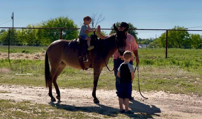 ONLINE-AUKTION Bieten Sie jetzt auf www.PlatinumEquineAuction.com Startgebot: 3.500 USD Auktion endet am 11. Mai 2025 Brauchen Sie ein neues Sattel? Schauen Sie bei White Rock Saddles auf unserer Website oder Facebook vorbei! Lernen Sie Chica kennen! Ich garantiere Ihnen, dass Sie keinen zuverlässigen und cooler kleinen Maultier finden werden als dieses Mädchen! Man sagt, gute Dinge kommen in kleinen Paketen, und das trifft hier absolut zu! Mit nur 8 Jahren und einer Schulterhöhe von 13 Händen (ca. 1,65 m) täuscht ihre Größe – ihr Herz ist groß und sie kann alles, was ein großes Maultier kann. Chica ist für wirklich jeden geeignet, von Kindern bis hin zu Oma und Opa, sodass Sie sie sorgenfrei reiten können! Sie ist eines der freundlichsten Maultiere, die ich je gesehen habe, und mit ihrer tollen Einstellung braucht man kein Maultierexperte zu sein, um sie zu genießen. Sie wäre auch perfekt für einen Erstbesitzer eines Maultiers. Dieses kleine Mädchen ist äußerst gut ausgebildet und hat eine elegante Handhabung. Sie ist einhändig gebrochen, mit einer großartigen Halsreining, und sie geht Schritt, Trab und Longe in perfekten Kreisen, immer die richtige Seite aufnehmend und auf den Punkt stoppend. Chica ist ein außergewöhnliches kleines Maultier für den Showring – sie ist einfach so gut ausgebildet und cool! Müssen Sie Tore öffnen oder schließen? Kein Problem – sie passt seitwärts genau dorthin. Sie können sie sogar nur mit einem Lederstück um den Hals reiten! Chica ist alles gewöhnt: Flaggen tragen, Planen überqueren, sogar Schüsse vom Rücken aus abgeben. Wir haben sie beim Roping auf Rindern eingesetzt, und sie steht ohne Probleme im Boxen. Beim Trailreiten macht Chica richtig Spaß! Sie wurde auf unzähligen Trails geritten und folgt gerne jedem Weg, den Sie ihr zeigen. Sie überquert Wasser, Baumstämme und Hügel mühelos und wurde auch schon durch belebte Straßen und Autobahnen geführt. Ich habe kein besseres Maultier als die liebe Chica getroffen! Sie ist großartig mit Kindern und bringt sie gerne überall hin. Chica passt zu jedem Reitniveau, und jeder, der auf ihr sitzt, hat Spaß. Ich bin mir sicher, dass ihre neuen Besitzer sie genauso lieben werden wie wir! Sie ist gut mit Hufschmied, lässt sich leicht auf- und abladen, ist einfach zu satteln und zu trensen. Sie steht wunderbar beim Hufschmied, ist toll bei Bädern und steht auch in Querstangen. Außerdem ist sie unkompliziert im Pflegeaufwand und momentan barfuß. Verpassen Sie nicht dieses einmalige Maultier – Chica ist wirklich einzigartig! Wenn Chica zu Ihnen passt, rufen Sie uns gerne an, um Fragen zu stellen. Wir freuen uns, mit jedem Interessenten zu sprechen. Vereinbaren Sie einen Termin, um sie kennenzulernen, aber falls Sie keine Zeit haben, bieten wir auch FaceTime-Besichtigungen an. Wir organisieren den Versand weltweit, auch nach Hawaii, Kanada und überall dazwischen. Eine Liste zuverlässiger Spediteure steht bereit, um sie sicher zu Ihnen nach Hause zu bringen.
