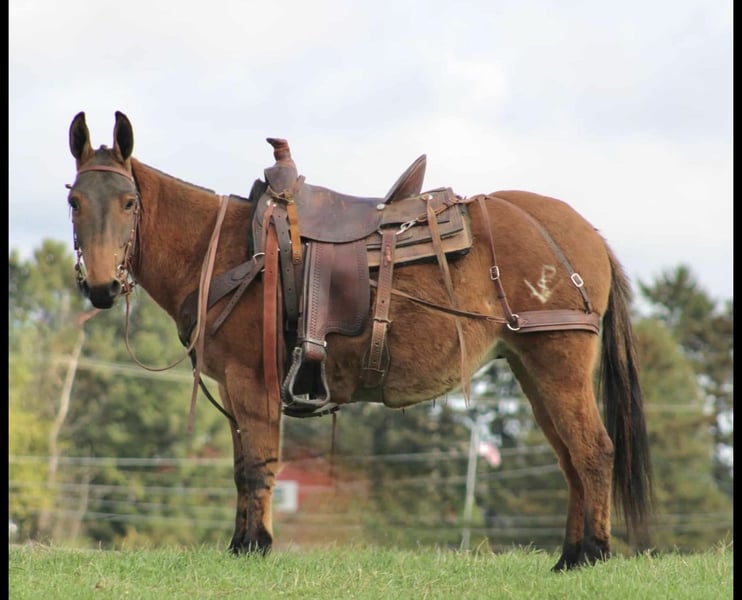 "AVAILABLE ON ONLINE HORSE AUCTION AT www DOT MagicHorseAuction DOT com BIDDING OPEN NOW thru TUESDAY | November 25TH! - BUY IT NOW AVAILABLE! *Final price will be determined on auction site* CONSIGNOR CONTACT INFO: Equestrian Dreams Sam Stoltzfus 814-810-7918 LOCATION: Rebersburg, PA "🌟🌟 Peanut 🌟🌟 Wow! What a pretty mule! Peanut is not your typical mule, this girl loves attention and will be waiting for you in the morning, she will let you rub her all over and is not touchy at all around her ears, she loves to be groomed and rubbed on , Peanut is well broke broke to ride and has a Smooth walk-trot-canter that is very easy to sit on , absolutely no buck or rear with Peanut and she loves to trail ride and has been hauled to state parks for trail rides and also been to fun shows , she loads and hauls great! She has been ridden around the farm and is not spooky to farm equipment or loud traffic Over the past year, Peanut has been ridden by both adults and children. She has experience in Ranch, Halter, and Contest classes, and with more finishing, she has the potential to be a high-end performance or show mule. She rides out alone or in a group, has been harnessed, and is broke to a pack saddle. Peanut is eager to please and a quick learner. Peanut sells 100% sound and healthy and requires no maintenance, she can be barefoot or have shoes she stands well for the farrier or vet She is up-to-date on farrier and dewormer and has a current coggins and health certificate If You have any questions please feel free to call Sam 814-810-7918 We are happy to assist arranging transportation anywhere in the US