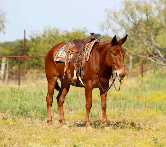 ONLINE AUCTION Place your bids at www.PlatinumEquineAuction.com Starting Bid $3500 Auction ends November 9th, 2025 Need a new saddle? Check out White Rock Saddles on our website or Facebook Here’s one mule you won’t want to miss! Clifford is the real deal — a big, bold, and beautiful 10-year-old red mule standing 15.1 hands tall and built like a tank. He’s got all the shape, bone, and presence in the world, and that golden personality to match. Clifford is as level-headed as they come — nothing rattles this guy. He’s been on countless mountain hunting trips in Colorado, crossed rivers and rugged trails, and spent week-long camping trips in the high country. He’ll cross water, logs, bridges, and whatever’s in front of him without missing a beat. You can ride him right down the highway with traffic buzzing by, or through the heart of the Fort Worth Stockyards with music, wagons, and crowds all around — Clifford just drops his head and packs on like a seasoned pro. He’s been in parades, seen flags, tarps, and all kinds of commotion, and takes it all with a calm, steady mind. He’s got a smooth, easy jog and lope that’ll keep you comfortable all day long. And when the day’s done? Clifford turns right back into that puppy-dog gentle, in-your-pocket mule who just wants a scratch and your company. If you’re looking for a safe, seasoned, rock-solid partner with looks, brains, and heart — Clifford checks every box. Big, beautiful, broke, and absolutely dependable — this is the kind of mule everyone wishes they had tied to their trailer! We are open to anyone interested in him to schedule a time to come see him or if you can’t make it schedule a FaceTime showing to see him. If you need help with transport don’t hesitate to ask we have a list of reputable haulers that can get him safely to your doorstep WORLD WIDE including, Alaska , Mexico, Hawaii, Canada and anywhere in between from Stephenville, TX. Contact Michelle with M $ Performance Horses 661-817-9120 with any questions. ONLINE AUCTION Place your bids at www.PlatinumEquineAuction.com Starting Bid $3500 Auction ends November 9th, 2025 Need a new saddle? Check out White Rock Saddles on our website or Facebook