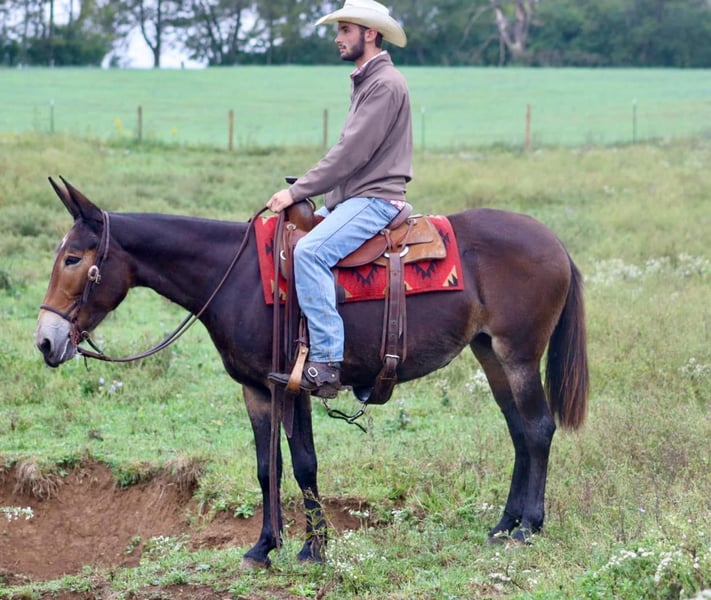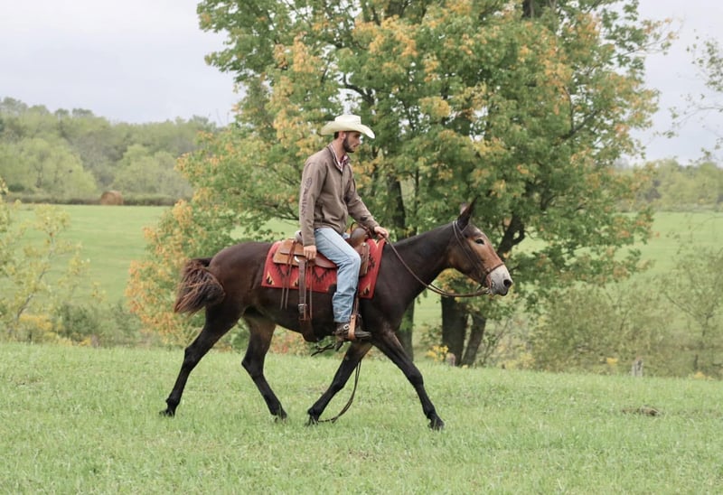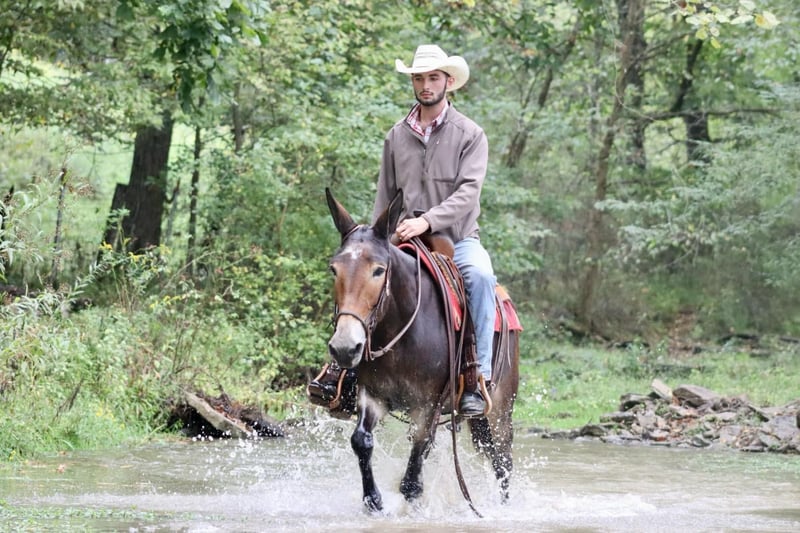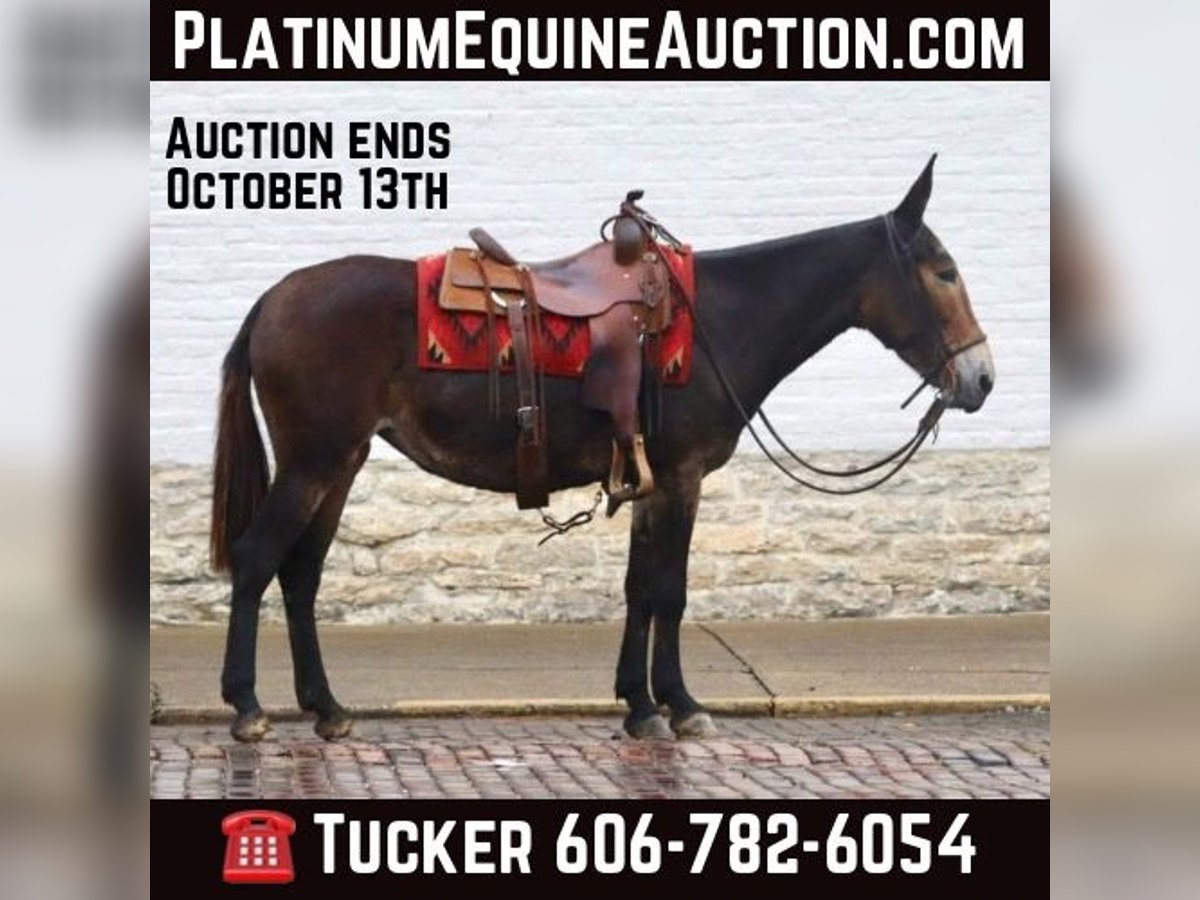 ONLINE AUCTION Place your bids at www.PlatinumEquineAuction.com Starting Bid $3500 Auction ends October 13th, 2024 Need a new saddle? Check out White Rock Saddles on our website or Facebook! Darlene is a 13 year old, 15.1 hand Molly mule. She is the epitome of a perfect trail mule. No matter the trail or experience level of her rider, she will take care of her rider and get them home safely. Darlene will walk, jog, and lope nicely. She has a wonderful, true neck rein like a horse. She moves off the leg, side passes, and backs up. On the trails, she crosses water nicely. She steps over logs, goes down banks and steep hills with grace, and handles narrow/technical trails with ease. Darlene rides out alone or in the group nicely. She is traffic safe as well as quiet riding around farm equipment. She is not the type of mule that is rattled or spooked easily. Rides well in a britchen. Darlene stands nicely for the farrier, easily picks up all 4 feet. She stand for bathing, and mounting. Loads easily. She does well in new places and is excellent on overnight camping trips. Whether you’re looking for a simple trail riding partner, a hunting partner, or anything else, she is a great option for you! For more information, call or text Brookeside Horses Tucker 606-782-6054 Located in Brooksville, KY. ONLINE AUCTION Place your bids at www.PlatinumEquineAuction.com Starting Bid $3500 Auction ends October 13th, 2024 Need a new saddle? Check out White Rock Saddles on our website or Facebook!