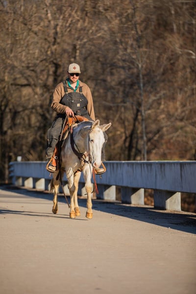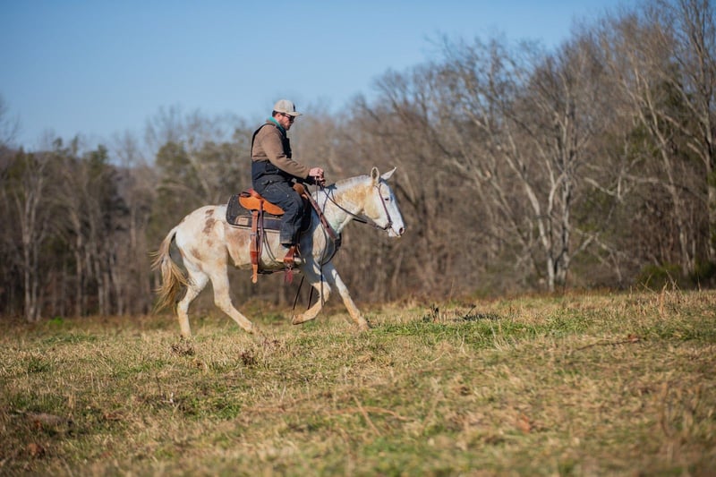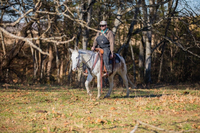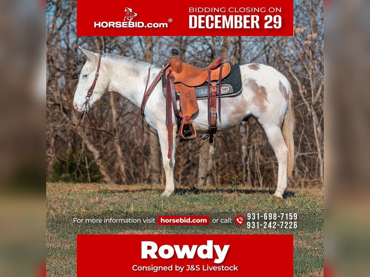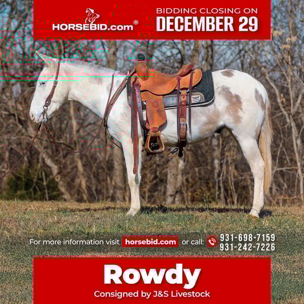 ⚜️𝐓𝐇𝐄 𝓗𝓮𝓻𝓲𝓽𝓪𝓰𝓮 𝐖𝐢𝐧𝐭𝐞𝐫 𝓒𝓵𝓪𝓼𝓼𝓲𝓬⚜️ Happening now thru MONDAY | DECEMBER 29th - Available EXCLUSIVELY on HorseBid's website! For more details and to register visit: www.Horsebid.com CONSIGNOR CONTACT: J&S Livestock 931-698-7159 or 931-242-7226 LOCATION: Santa Fe, TN BREED: Mule REGISTERED: No COLOR: Grey and white paint HEIGHT: 13.3 AGE: 5 GENDER: John Mule Rowdy is a 5yr old John mule standing at a fun size of 13.3hh. If you’re looking for an in-your-pocket type mule with the most willing demeanor to have as a steady trail partner, then Rowdy would be an excellent match for you! With his kind heart and loving personality he is sure to make you fall in love with him. He has a quiet temperament, and is super easy to get along with. Attention is definitely something he seeks, and will soak in every ounce of it you could possibly give. He is very easy to catch- he normally tends to find you before you can find him! He is a dream to bathe, groom, saddle, and trailer. He is even great for the farrier- he currently has shoes all the way around. He is excellent on the trails and is surefooted. He will wade through water, cross fallen down trees, scale across some rocky trails, to safely taking you down muddy, slippery terrain. Rowdy isn’t gonna spook or shy away from wildlife, dogs, guns being fired off his back, etc. We have even lightly roped some calves off him. Not much ever seems to phase him- He’s truly such a cool little dude. Rowdy carries his self so well and is pretty smooth- He has a nice trot and will lope all day long. We have a very recent PPE on Rowdy and he is 100% sound- prior to his PPE he did get a blemish on his back left leg out in the pasture but it is completely healed, just missing a little hair. It does not affect him whatsoever according to our vet. For any further information feel free to reach out! JT 931-698-7159 OR Bailey 931-242-7226