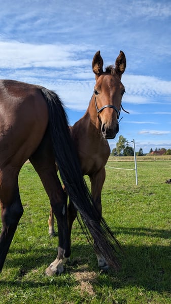 Wir bieten hier unseren vielversprechenden Nachwuchsathleten von Estobar NRW an. Sein Vater "Estobar NRW beweist es immer wieder: E steht für Erfolg. Als Bewahrer der westfälischen E-Linie des Ehrentusch ist dieser Hengst schon jetzt eine lebende Legende. Dabei sorgte er nicht nur für zahlreiche Pferde von internationalem Format, sondern steht mit seinen Nachkommen auch für Rittigkeit, Charakterstärke und Reitkomfort. Rittigkeit, Schwung, Kraft und ein Reitgefühl, das seinesgleichen sucht. Heute sind vor allem seine Nachkommen das beste Aushängeschild für diesen prägenden Hengst. Der Einzug in die Top 1% der besten Reitpferde-Macher unterstreicht seine Vererbungskraft. Geboren am 28.06.2025 weist er eine bemerkenswerte Bewegungsqualität vor. Der schicke und optisch ansprechende langbeinige braune Hengst ist korrekt gebaut und begeistert jeden mit seinem Charme und Ausdruck. Er zeigt sich stets interessiert und aufgeschlossen und lässt keine Wünsche offen. Seine Mutter, abstammend von Juventus x Sir Sandro zeichnet sich durch eine enorme Rittigkeit aus. Sie ist leistungsgeprüft, wobei besonders ihr Schritt und Galopp hervorzuheben sind.