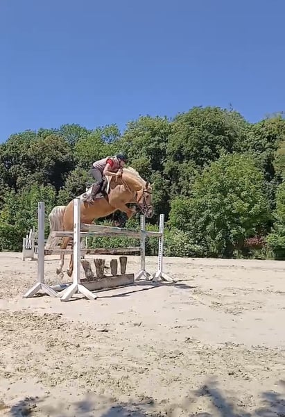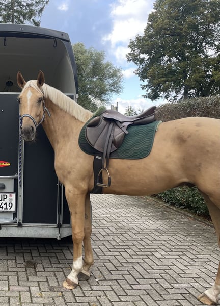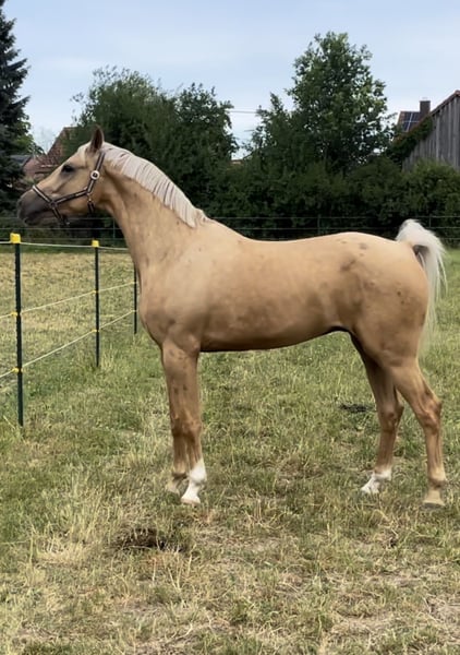 Verkaufe Mecklenburger Warmblut Wallach – Ein beeindruckender Springpartner! Zum Verkauf steht ein wunderschöner Palomino-Wallach, geboren im Jahr 2019. Mit einem Stockmaß von 169 cm vereint er Eleganz und Sportlichkeit in perfekter Harmonie. Dieser charmante Mecklenburger Warmblut ist ideal für ambitionierte Springreiter oder auch Freizeitreiter, die auf der Suche nach einem talentierten Partner sind. Sein ausgeprägtes Springtalent, kombiniert mit einem freundlichen Wesen und guten Grundgangarten, macht ihn zu einem vielseitigen Begleiter. Bei Interesse freuen wir uns auf Ihre Kontaktaufnahme, um weitere Details zu besprechen und einen Besichtigungstermin zu vereinbaren.