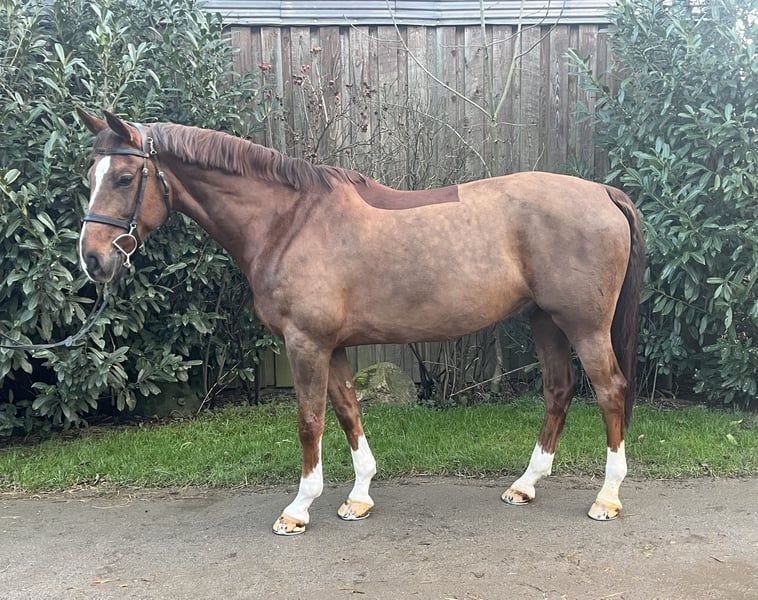 À vendre pour le compte d'un tiers : Je propose ici un hongre prometteur avec une excellente lignée à vendre. Hongre très sage, qui procure beaucoup de plaisir dans le travail quotidien. Que ce soit en saut d'obstacles ou en dressage, il souhaite toujours faire plaisir. Actuellement classé en M et a couru en M** sans faute. Pour l'essai, nous demandons une indemnité de 30€, qui sera bien sûr déduite en cas d'achat.