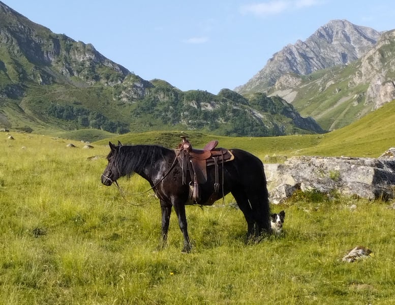Hoedic du Boila, 9 ans, fille d'Uquia du Boila est polyvalente et facile. Elle connait son role. C'est une jument calme et fiable qui peut convenir au loisir familial comme au travail avec le bétail. Elle a le pied sur et est à l'aise dans son environnement. Elle a grandit en estive et travaille l'été en altitude. Elle est aussi à l'aise en carriere et peut donner de jolis mouvements avec légèreté. Elle connait le lasso et les codes de travail du bétail. A jour des visites véto, osteo et dentiste. Vit et travaille pieds nus Santé impeccable et très bons aplombs De belles origines d'élevage. Les papiers sont en ordre. Peut convenir pour l'élevage. Une valeur sure et passe partout pour tout le monde.