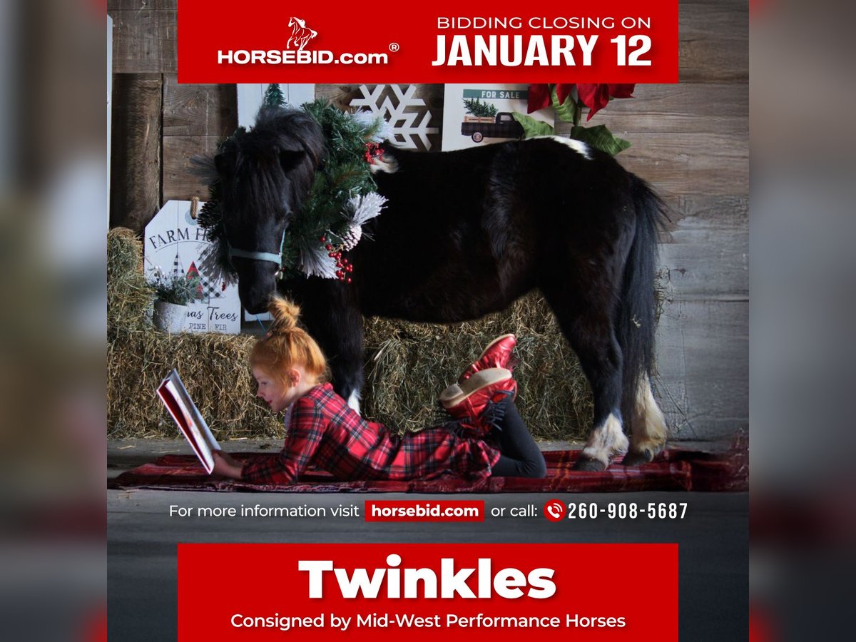 ♦️𝐍𝐄𝐖 𝐘𝐄𝐀𝐑'𝐒 𝑬𝒙𝒕𝒓𝒂𝒗𝒂𝒈𝒂𝒏𝒛𝒂♦️ Happening now thru MONDAY | JANUARY 12th - Available EXCLUSIVELY on HorseBid's website! For more details and to register visit: www.Horsebid.com CONSIGNOR CONTACT: Mid-West Performance Horses 260-908-5687 LOCATION: Saint Joe, IN BREED: Mini REGISTERED: No REGISTERED NAME: Twinkles COLOR: Paint HEIGHT: 33 inches AGE: 10 GENDER: Mare 𝘛𝘸𝘪𝘯𝘬𝘭𝘦𝘴 • 2015 Paint Pony Mare • 33 inches Twinkles is a gorgeous ten-year-old paint mini pony mare who is ready to make someone’s Christmas absolutely unforgettable. She is the kind of pony every family dreams of—sweet, dependable, and incredibly kid-friendly. Whether she’s hitched to a cart or saddled for a ride, Twinkles brings joy, confidence, and a whole lot of holiday magic to every child she meets. This little mare is broke to ride and drive, making her a versatile partner for young cowboys and cowgirls. She has been up and down main highways and through town, proving herself traffic safe and sound every single time. Kids can easily catch her out in the pasture, and she loves the attention. She has no bad habits, stays gentle, and is always willing to please. Twinkles has great, solid feet and has never foundered. She handles every type of trail with ease—sure-footed, steady, and always looking after her little rider. Whether your child wants to explore woods, fields, creeks, or quiet roads, Twinkles will take care of them from start to finish. She truly makes trail riding safe, fun, and unforgettable. Saddling and hitching this little mare is a breeze. Twinkles has excellent stall manners, fantastic ground manners, and she’s an easy keeper through and through. She turns out well with mares, geldings, horses, and ponies, and she’s used to cows, dogs, and all sorts of farm life. She has even been around heavy machinery without batting an eye. A calmer, steadier mini pony is hard to find. Twinkles will stand tied all day long and loves being groomed and pampered. She is the perfect size, the perfect color, and the perfect temperament for a child wanting their first real partner. She truly would make a magnificent Christmas gift for any little cowboy or cowgirl looking for a trustworthy pony to love and grow with. Midwest Performance Horses can provide holiday-season shipping to ensure this special little package arrives safely and on time for your family. For questions, videos, or to schedule a visit, please contact April with Midwest Performance Horses. Wishing you and your family a warm and blessed holiday season! Mid-West Performance Horses - Saint Joe, Indiana - 260-908-5687