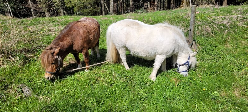 Hurricane, Rasse Curly Horse, 76 cm und Snow, 88 cm suchen zusammen einen Platz. Snow ist am 5.6.02 geboren. Hurricane am 14.04.16. Beides Stuten. Sie leben in einer Gruppe mit 7 Ponys in einem Offenstall. Beide zusammen CHF 2500.--