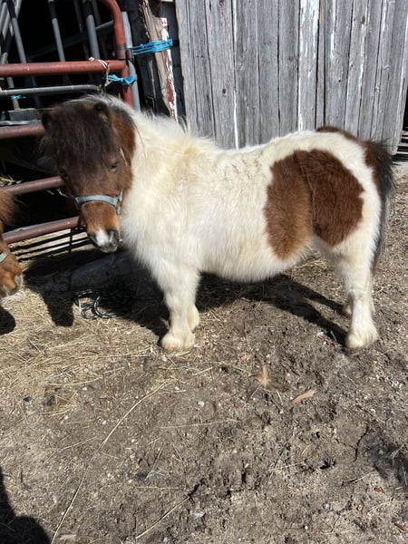 20yr old miniature mare. Good with farrier, bathing. Can drive-but it has been a few years. Also have a cart and harness for sale if interested. Has been around other horses. Looking for a good home.