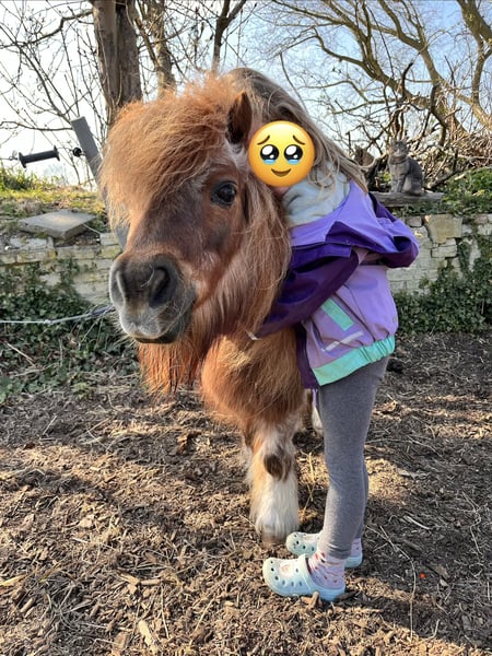 Wegen Hobbyaufgabe suchen wir einen neuen Möhrchengeber für unsere Shetty Stute. Geboren 4/2003. Sie wurde von uns als Beistellpony angeschafft. Sie ist jedoch eingefahren und besitzt auch ein Kutschgeschirr. Da wir keine Ahnung vom Kutsche fahren haben, ist das bei uns leider nie gefördert worden. Jedoch hatte die kleine Maus sehr viel Spaß den Schlitten zu ziehen ;-) Sie darf wegen einer Rehe vor 4 Jahren nur noch stundenweise auf die Wiese. Kommt damit auch gut zurecht und ist seitdem beschwerdefrei. Mit Stuten kommt sie ebenfalls gut zurecht und sie ist zaunsicher. An und für sich ist sie ein typisches Mini . Frech, fordernd, dickköpfig, verfressen… aber eben auch witzig, kuschelig, mutig und treu. Sie kennt offenstall und geht nachts auch gerne mal in die Box. Ist immer geimpft und entwurmt worden und auch der Hufschmied hatte mit ihren Minifüßchen regelmäßig ihren Spaß. Beim Schmied ist sie ganz brav. Wir wünschen uns ein ganz tolles zu Hause für unsere kleine Maus. Deshalb: !!!Platz vor Preis!!!!!