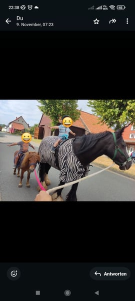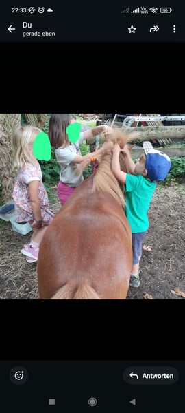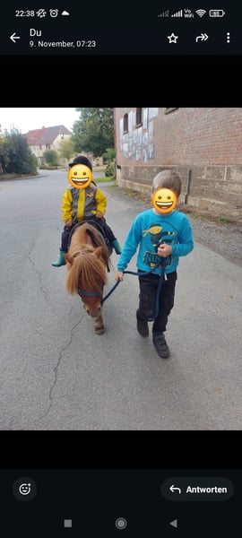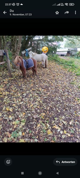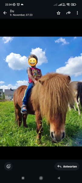 Floh ins ein 9j. charmanter süßer Mini-Shetty Fuchs Wallach, der mit seiner verschmusten Art alle um den Finger wickeln kann. Es ist kein Notverkauf und am liebsten würde ich ihn zusammen mit Polly verkaufen, da sie sich sehr gut verstehen. Nur in allerbeste Hände, ansonsten behalte ich ihn! Floh ist ein zugewantes Kinderpony. Leider wollte ich ihn einfahren lassen, wobei er einen Kutschunfall hatte. Seitdem ist er etwas schreckhaft, wenn ein Fahrrad vorbei fährt. Aber wir haben mit ihm schon sehr viel geübt, sodass er inzwischen nur kurz etwas zuckt, wenn ein Fahrrad vorbei kommt und nicht mehr panisch davon rennen möchte. Abgesehen davon ist er ein absolutes Kinderpony. Egal wie viele Personen um ihn herum sind, genießt er die Aufmerksamkeit und gekrault zu werden. Er geht überall mit zum spazieren, war auch schon beim st. Martinsumzug vorne weg gelaufen, Schlitten ziehen (geführt), longe, Langzügel, doppellonge, geführte Spazierritten... Für weitere Fragen stehe ich Ihnen gerne zur Verfügung.