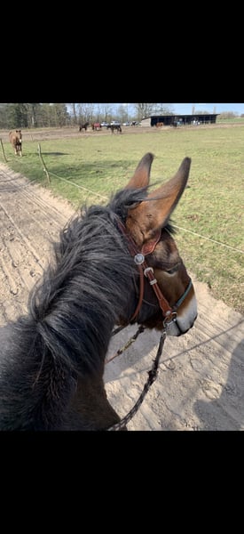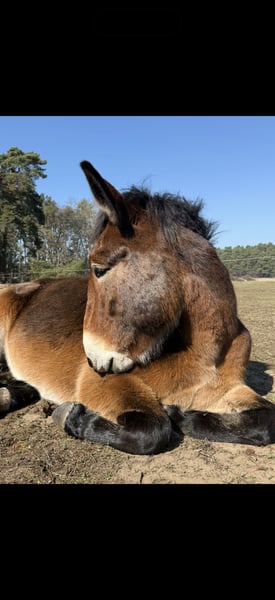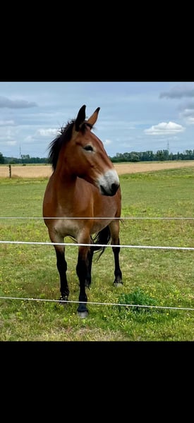 Piero of Lychen – 6-Year-Old Mule Gelding Seeks Loving Home With a heavy heart, I am looking for a suitable new home for my mule Piero due to personal reasons. It is especially important to me that he finds a family that appreciates him and can provide a permanent, loving home in a herd environment. Piero is 6 years old and will turn 7 in April. He was born and raised in Lychen with the Rensch family. He is a large cold-blooded mule. Piero is an open, friendly mule with a playful nature. Within the herd, he is social and peaceful. He shows little interest in hierarchy – he tends to stay out of conflicts and prefers to engage playfully with his herd mates. He has been very well trained from the ground and is truly very finely schooled. He works very motivatedly with the handler. He is familiar with standard lunging, work on the double longe, groundwork with poles, and horsemanship work with the working rope. He always enjoys this work greatly and is incredibly motivated. Piero has been driven from the ground and has also spent three months in Lychen with the Rensch family to be backed, during which he was also hitched in a pair. Additionally, he has experienced many rides with a pack saddle over rough terrain. Currently, he has been in professional training for about three months, focusing on western riding. He is ridden with a relaxed rein; during the first eight weeks, he was exclusively worked with a halter or hackamore. He is familiar with handling children, dogs, goats, and cattle, and remains calm and friendly in these situations. He is generally open to people but needs some time to fully trust and bond with a person. In everyday handling, he is manageable and well-behaved. At the moment, Piero is still in training. If interested, he can be visited at the training facility, and further training can be arranged if desired. Alternatively, the training can be concluded, and he will be returned to normal stabling. Piero is recently vaccinated and dewormed. His hooves are regularly trimmed (every 8 weeks), and three years ago, we had his wolf teeth removed (as they were large and caused discomfort). He has never been ill. He is simply the most beautiful mule I have ever seen! I wish for Piero a family that enjoys ground work, hikes, and riding adventures, and values a fair partnership with a mule, giving him time to build a genuine bond. If you are seriously interested, I look forward to hearing from you and am happy to share more about him. Currently located in 14552 Michendorf. Price negotiable.