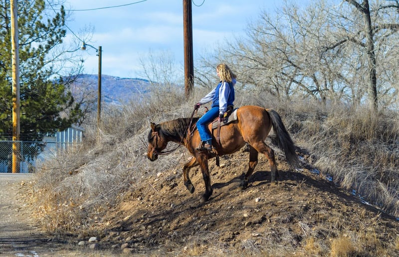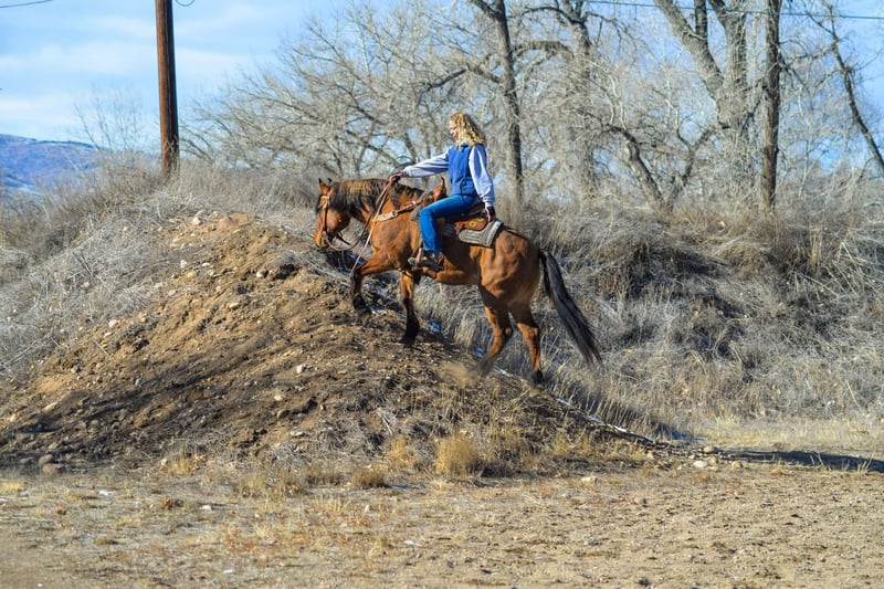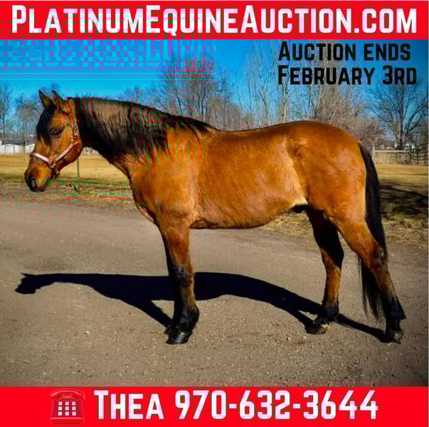 ONLINE AUCTION Place your bids at www.PlatinumEquineAuction.com Starting Bid $3500 Auction ends February 3rd, 2025 Need a new saddle? Check out White Rock Saddles on our website or Facebook! Diego is a 13year old Dun mustang gelding Standing at 15.2 hands and built like a brick house! Diego is THE all around horse! From level 4 parelli and liberty training to cross country, hunter jumper, trail riding, packing and even some western pleasure and equitation this horse is extremely versatile and athletic. Diego has done liberty work since he was 1 year old, he knows the games, will side pass both ways with just pointing and was even taught to lay down and bow when he was younger! Diego rides English and Western and excels either way, He has been cross country jumped and done some hunter jumper training as well as dressage and Free jumped! Diego has a ton of scope and tuck and does not miss a beat. He has even taught some kids jumping lessons! Diego knows the basics of reining and western pleasure, has a great collection, sliding stop, simple lead changes and rollbacks. Diego will work just off of your voice and legs and is light off your legs and hands. Diego has pushed cows, been roped off of and has helped us catch colts out in the pasture! With all of Diego’s Versatility his all time favorite thing is trail riding. He is safe in crazy and chaotic environments and very used to it! Riding in downtown Fort Collins there is nothing this guy hasn’t seen. Semis, bikes, strollers, crowds, loud music, kids, dogs etc etc etc. Diego is also very sure footed and is great when it comes to packing or riding on steep terrain or rugged territory, we have even taken him camping! Diego is the all around horse ready for any job you throw at him! Come check him out! Call Dynamite Horses Thea 970-632-3644 with any questions. Located in Fort Collins, CO. ONLINE AUCTION Place your bids at www.PlatinumEquineAuction.com Starting Bid $3500 Auction ends February 3rd, 2025 Need a new saddle? Check out White Rock Saddles on our website or Facebook!