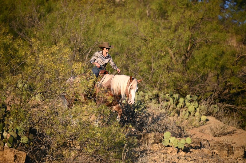 ⚜️ Das Horseman’s Showcase ⚜️ Jetzt bis MONTAG, 1. Dezember – Exklusiv auf der Website von HorseBid! Weitere Details und Anmeldung unter: www.Horsebid.com VERKÄUFERKONTAKT: Jordan Brown, 502-565-6621 STANDORT: Georgetown, Texas RASSE: Mustang ANGEMELDET: Nein FARBE: Roter Roan HÖHE: 14,3 hh ALTER: 6 Jahre Geschlecht: Wallach Sam Elliot trägt seinen berühmten Namen aufgrund seiner coolen Old-School-Attitüde und seines authentischen Western-Looks. Mit goldfarbenem, schulterlangem Mähnenhaar und einer Stirnlocke bis zu den Nüstern ist er zweifellos ein Frauenheld, der jedem, der ihn sieht, das Herz stehlen wird! Unbeeindruckt von Verkehr, Hunden, Lichtern und Trubel ist er ein großartiges Pferd für Paraden, Shows und Arbeitstage! Er hat bereits viel erlebt und bewiesen – mit einem Lebenslauf voller harter Tage beim Rindertrieb auf verschiedenen Ranches im Texas Panhandle. Geländesicher ist seine Spezialität, und es gibt kein sichereres, mutigeres Pferd, um dich über jedes Terrain zu führen, das du dir vorstellen kannst! Er hat einen gleitenden Trab, den man leicht sitzen oder posten kann, und er kann auf Wunsch auch gleichmäßig galoppieren. Elliot bevorzugt ein angenehmes, entspanntes Tempo und reitet sowohl in der Gruppe als auch mutig allein. Mit Zügelnebenzügeln oder direkten Zügeln, auch im englischen Sattel geritten, zeigt er keinerlei Widerstand. Seitwärts geht er, um Tore zu öffnen und zu schließen, fährt rückwärts vom Anhänger weg, liebt ein warmes Schaumbad und Kekse! Er sucht seine forever Familie!