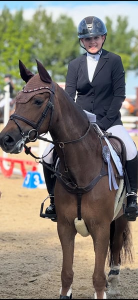 | NF | Mare | Chestnut | Born 2014 | 14.3 hh | Con "Memmody" tenemos una yegua muy elegante. En los últimos tres años, la yegua ha abierto camino en el deporte de saltos para su joven amazona. En 2023, su amazona empezó a competir en saltos de nivel E y, en los años siguientes, la dupla logró triunfar en pruebas de nivel A* y A**. Han ganado pruebas de salto con estilo, con notas de hasta 8,8. "Memmody" posee mucho talento y destaca por su cautela en los saltos; siempre quiere cruzar la barra sin errores. La yegua tiene mucho potencial para saltos mayores, pero no ha sido presentada en niveles superiores con su actual amazona debido a su tamaño, ya que ha optado por pasar a caballos grandes. Además de sus excelentes cualidades como pony de salto, la yegua es completamente tranquila en el manejo y se deja montar sin problemas por jinetes jóvenes. Si buscas un pony experimentado en recorrido, "Memmody" te permite dar el salto directo al deporte de competición. Un informe radiológico de 2021, incluyendo radiografías de la espalda, está libre de hallazgos. Para interés serio, por favor contacta telefónicamente al +49 170 7941333.