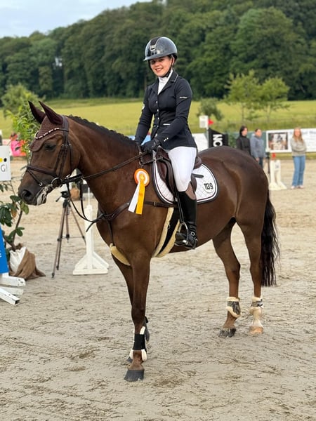 | NF | Stute | Fuchs | *2014 | 148 cm | v. Nieuwmoeds Patrick x Kantje‘s Ronaldo Mit „Memmody“ haben wir eine sehr schick aufgemachte Stute. Die Stute hat in den letzten drei Jahren ihrer jungen Reiterin den Weg in den Springsport geebnet. 2023 begann ihre Reiterin mit den ersten E-Springen und in den folgenden Turnierjahren konnte das Duo in A* und A**-Prüfungen siegen. Stilspringprüfungen konnten die beiden mit Noten bis zu 8,8 für sich entscheiden. „Memmody“ hat viel Vermögen und zeichnet sich durch ihre Vorsichtigkeit am Sprung aus; sie möchte immer fehlerfrei auf die andere Seite des Sprunges. Die Stute bringt viel Vermögen für höhere Springen mit, wurde aber mit ihrer jetzigen Reiterin nicht höher eingesetzt, da sie aufgrund ihrer Größe bereits den Umstieg auf Großpferd gewählt hat. Neben ihren tollen Eigenschaften als Springpony ist die Stute absolut brav im Umgang und lässt sich problemlos von jungen Reitern handeln. Wer ein parcours erfahrenes Pony sucht, kann mit „Memmody“ direkt in den Turniersport einsteigen. Ein röntgonologischer Tüv von 2021 incl. Rückenbildern liegt befundfrei vor. Bei ernsthaftem Interesse melden Sie sich gerne telefonisch unter der +491707941333.
