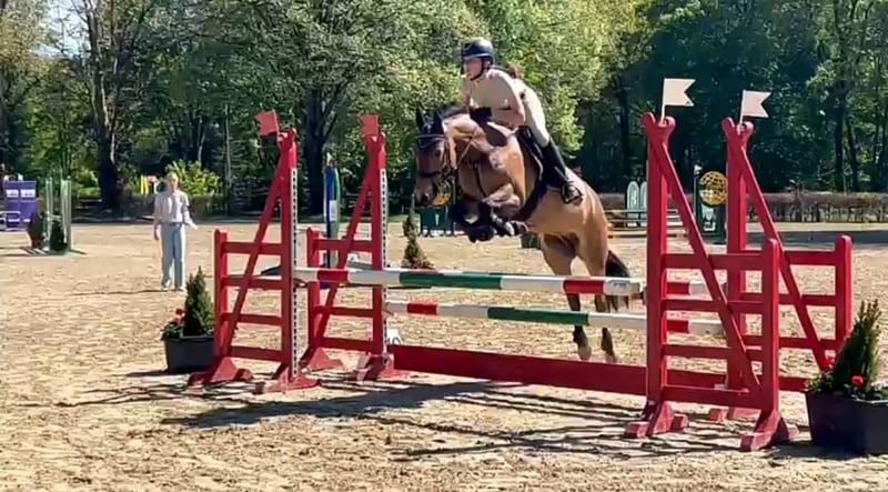 Super brave C pony. Show jumping. Dressage due to the rider's interest not further started. Pony makes nice, consistent circles. Well-behaved on trail rides, alone or in a group.