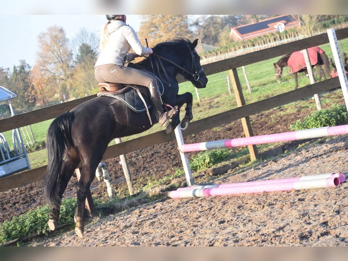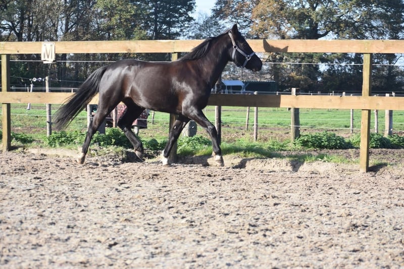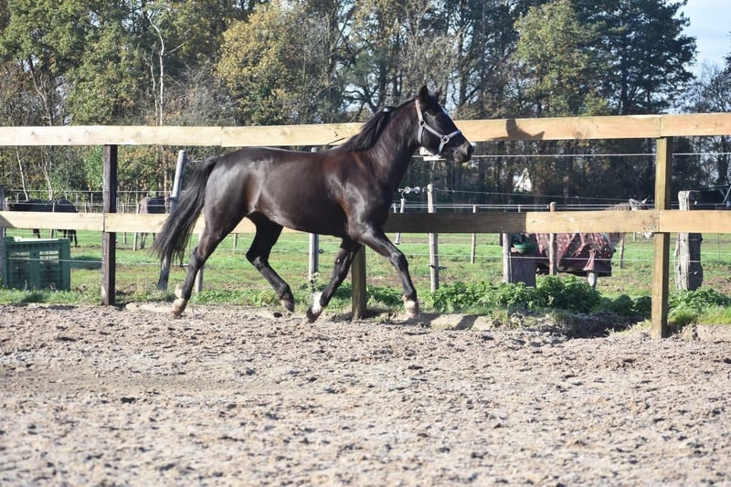 New Forest STERmerrie, 7 jr, correcte grote C Hungario’s Felice ( roepnaam Fee) is een prachtige, 7 jarige New Forest merrie. Het stamboek vindt haar erg correct en daarom heeft ze het predicaat STER gekregen. Klik HIER voor haar verrichtingsonderzoek en HIER voor haar papier. Ze is ca 138 m hoog en qua maat ook geschikt voor een niet ál te grote volwassene. Ze heeft even een tussenstation gehad voor een kind van 3… Buiten het feit dat dit wel heel erg jong is geven wij graag aan dat kinderen en pony’s altijd begeleidt moeten worden, zeker in het begin. Als je bij Fee in het midden van de bak begeleidt gaat het hier en voorheen prima. Ze is tot nog toe buiten erg fijn en dat doet ze ook het liefste. Het vorige baasje wil graag contact hebben met de nieuwe eigenaar. Ze schrijft :” Fee is een echte tut pony en houd van uren poetsen, Erg braaf bij een zekere ruiter. Braaf in het bos en kijkt van niks op. Gaat makkelijk de trailer op Meerdere keren mee op oefenwedstrijd geweest en ook dat doet ze super braaf. Springen vind ze erg leuk. Ze is eigenlijk super nuchter. Is onlangs door de tandarts behandeld, in bezit van een recent rapport. Incl. zadel en hoofdstel compleet € 5750,-