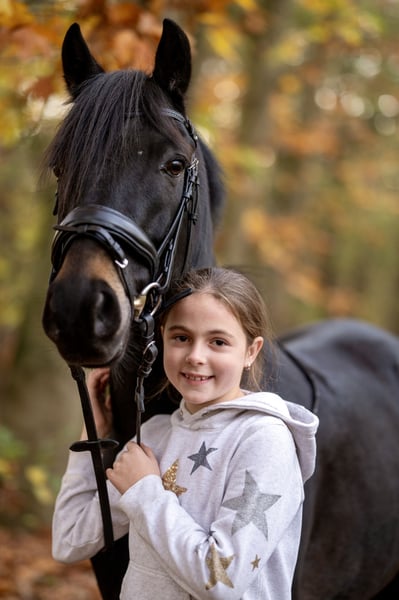 Ce magnifique poney New Forest de 7 ans, mesurant 1,42 m, est à vendre. Il est par Holthausen Frodo II x Sulaatik’s Fireball. King est un poney très docile et fiable, qui fait fondre le cœur des enfants. Il est aussi bien parfait en dressage qu’en petits sauts. Il a déjà participé à ses premières compétitions de la WBO avec une fille de 10 ans, et il s’en sort sans problème. Il est également idéal pour de petites manifestations, comme les fêtes de Saint-Nicolas ou les spectacles déguisés, où il ne passe pas inaperçu et participe volontiers à toutes les bêtises. En extérieur, que ce soit en groupe ou seul, King se montre également très à l’aise. En ce qui concerne son comportement, il est très gentil et calme, et il est bien sûr ferré et habitué au chargement en remorque.
