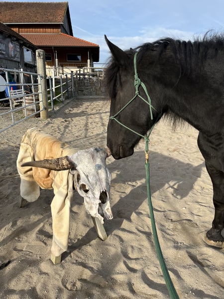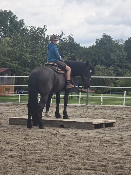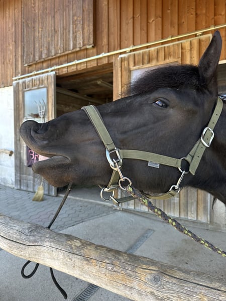 Whoopy ist eine 3,5-jährige Norika-Stute und wird im April 4 Jahre alt. Sie ist bereits angeritten, benötigt aber noch Unterstützung in der weiteren Ausbildung – die Feinheiten möchten mit Ruhe und Gefühl erarbeitet werden. Im täglichen Umgang ist sie absolut brav und zeigt keinerlei Unarten. Whoopy lernt schnell, ist motiviert und zeigt sich stets aufmerksam sowie unerschrocken. Den Trailpark kennt sie bereits und meistert alle Aufgaben dort mit Bravour. Für Whoopy wünschen wir uns einen Besitzer, der genügend Zeit für sie hat, mit ihr gemeinsam weiterwächst und Freude daran hat, seine eigene Handschrift in ihre Ausbildung einzubringen. Wer eine junge, lernwillige und gutmütige Stute sucht, die noch viel Potenzial für die Zukunft bietet, wird in Whoopy eine wunderbare Partnerin finden.